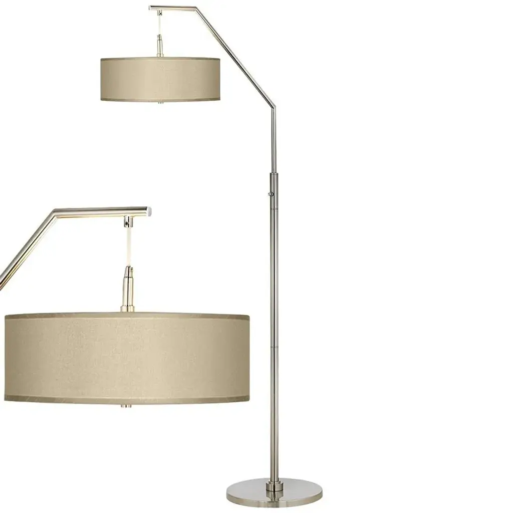 Modern Arc Floor Lamp Nickel Sesame Faux Silk Shade Living Room - 30" X 71" - Silver - 30" X 71"