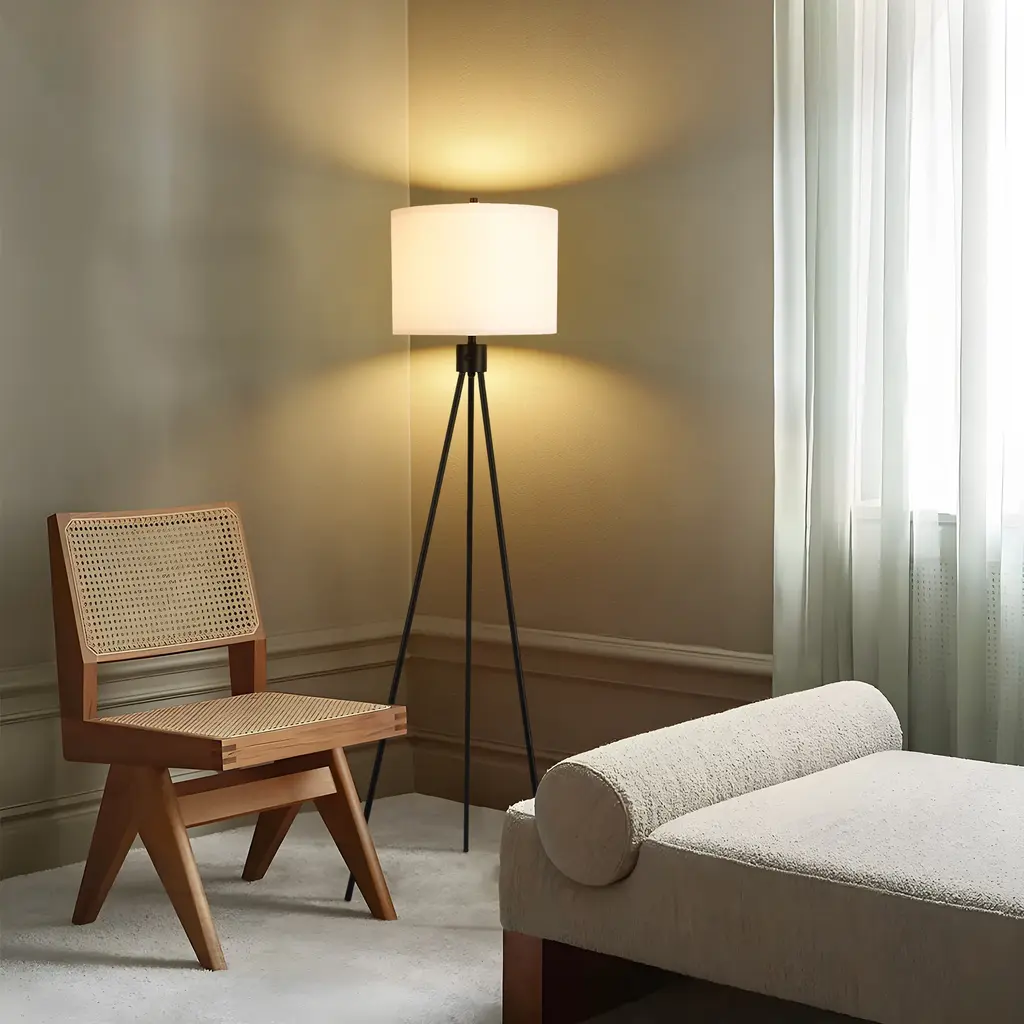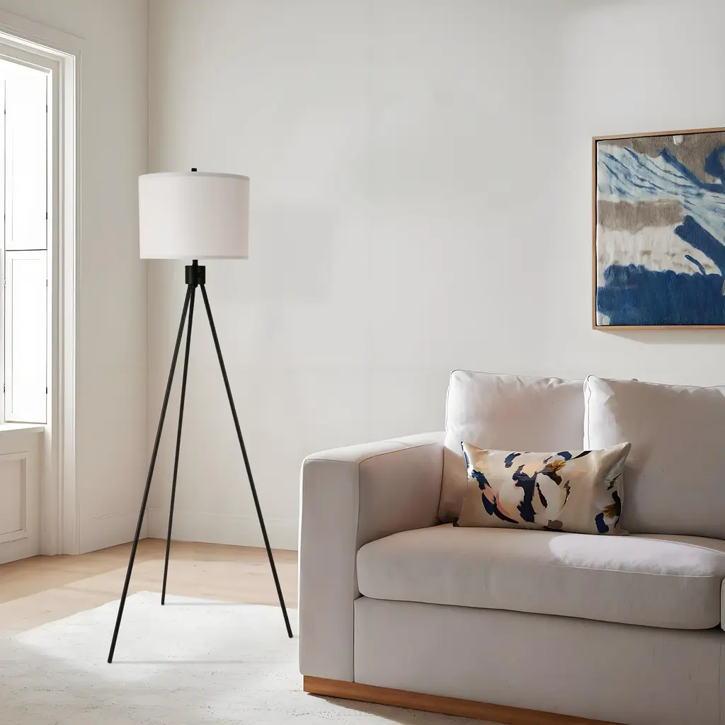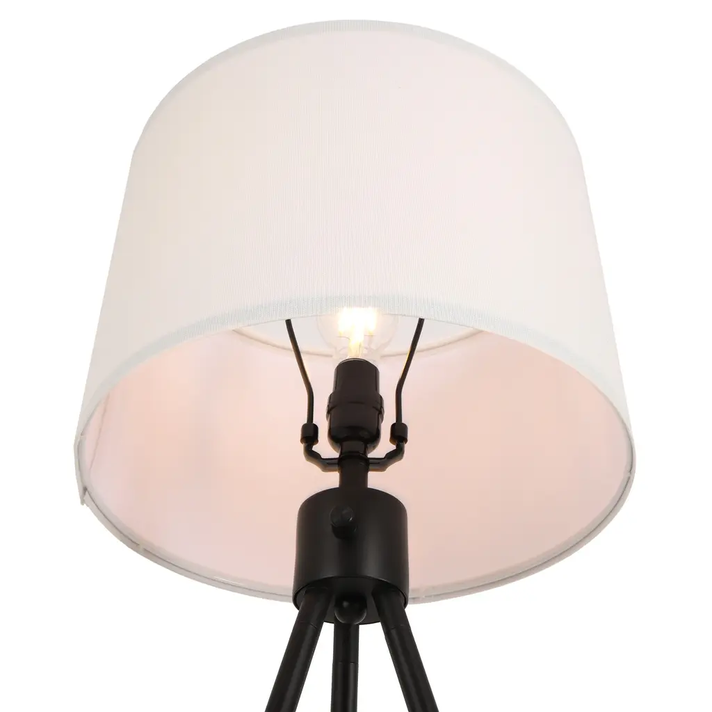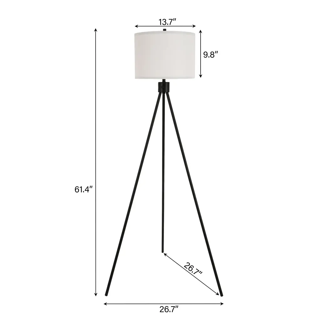This sleek floor lamp features a black metal tripod base that's not only sturdy but adds an elegant touch to any room. The drum shaped linen shade provides soft, evenly distributed light, creating a warm and inviting environment. The adjustable dimmer switch lets you control the brightness, making it perfect for any occasion. The minimalsit design with neutral tones complements modern interior effortlessly. Assembly is easy, but light bulb is not included. Features: The black metal tripod offers both sturdiness and a chic, modern vibe. Linen drum shade ensures even, diffused lighting that's gentle on the eyes. Convenient dimmer switch allows you to control brightness based on needs. Its minimalist, neutral color design fits effortlessly in any contemporary setting. Quick and simple assembly, with no bulb included, so you can choose the perfect light for your room. The type of the light bulb is E26, maximum 100 watts.