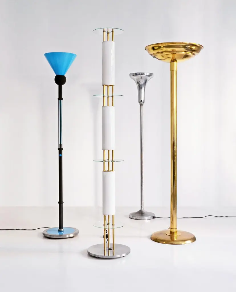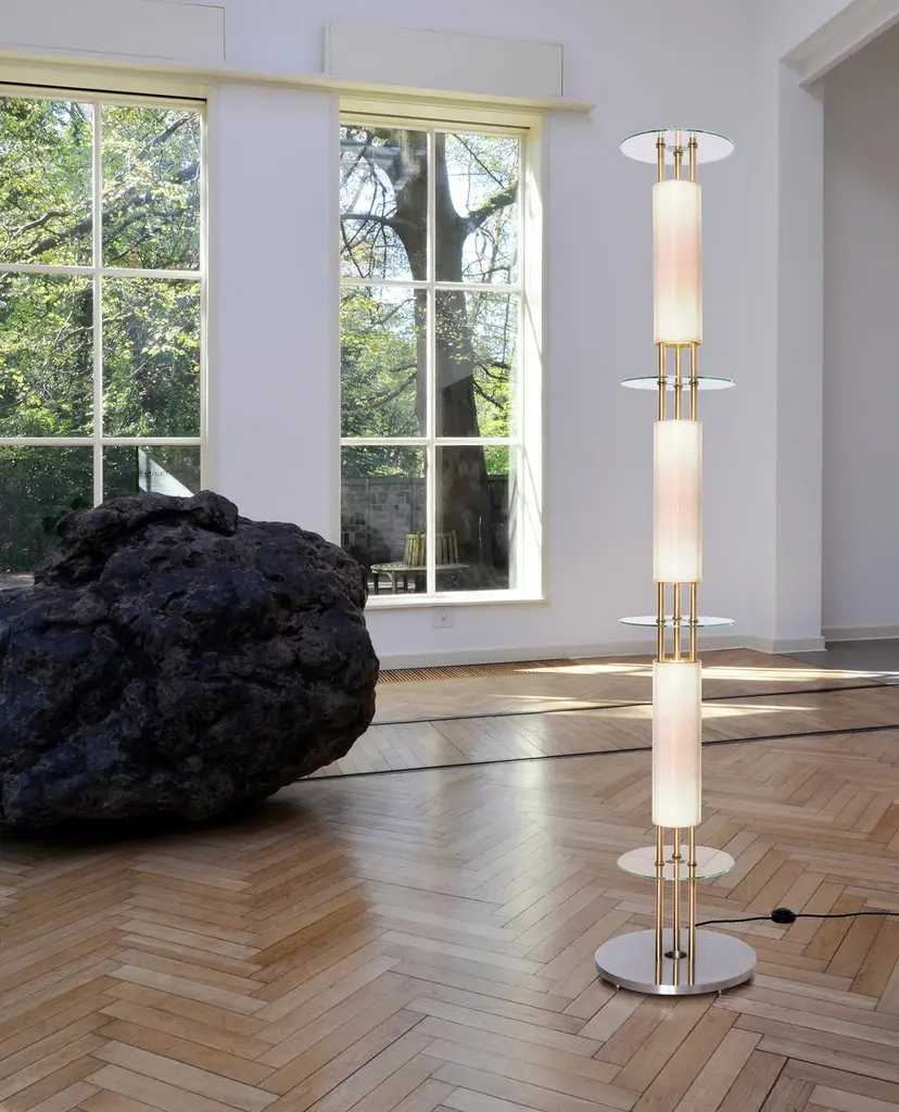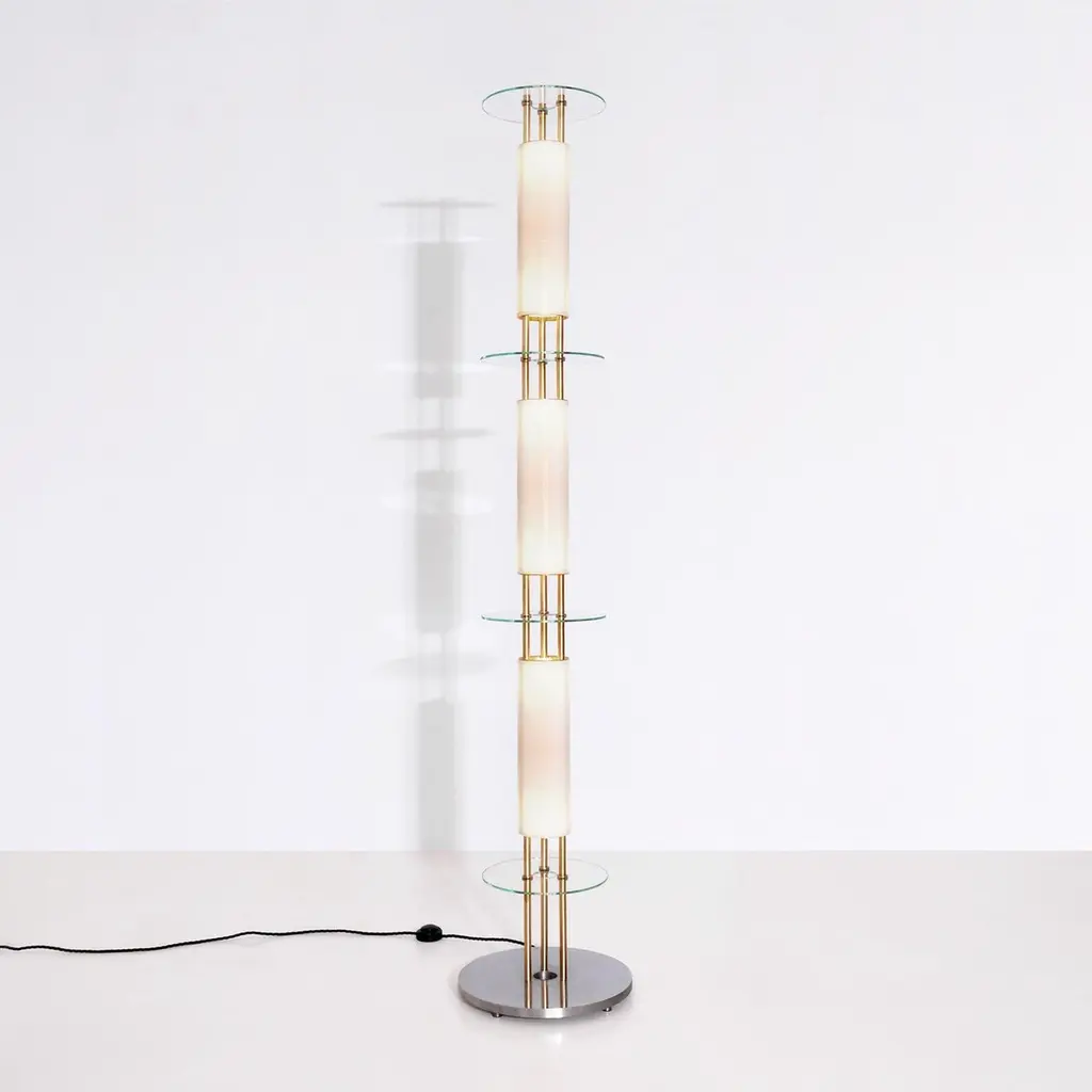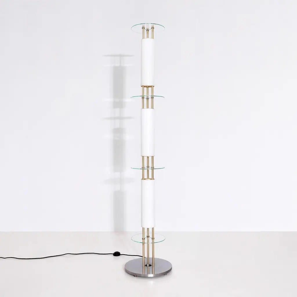 Modern Contemporary Sculptural Floor Lamp, Brass, Opal Glass Cylinders, Bespoke