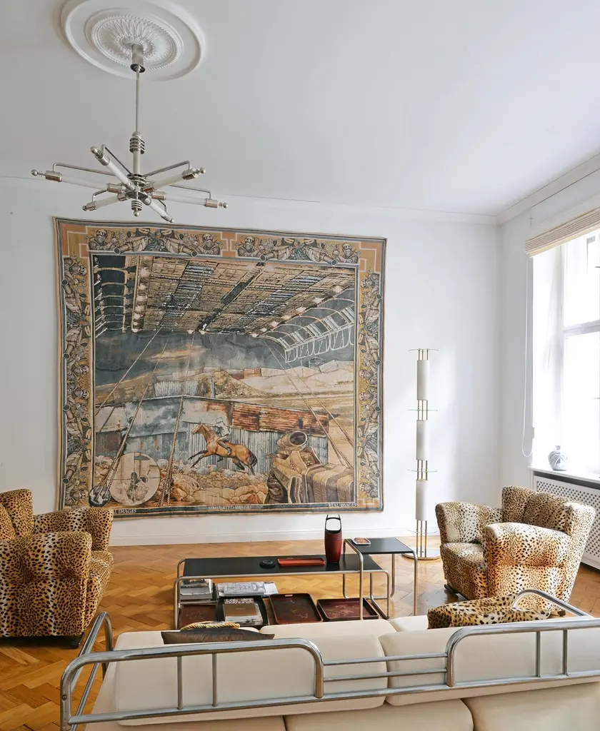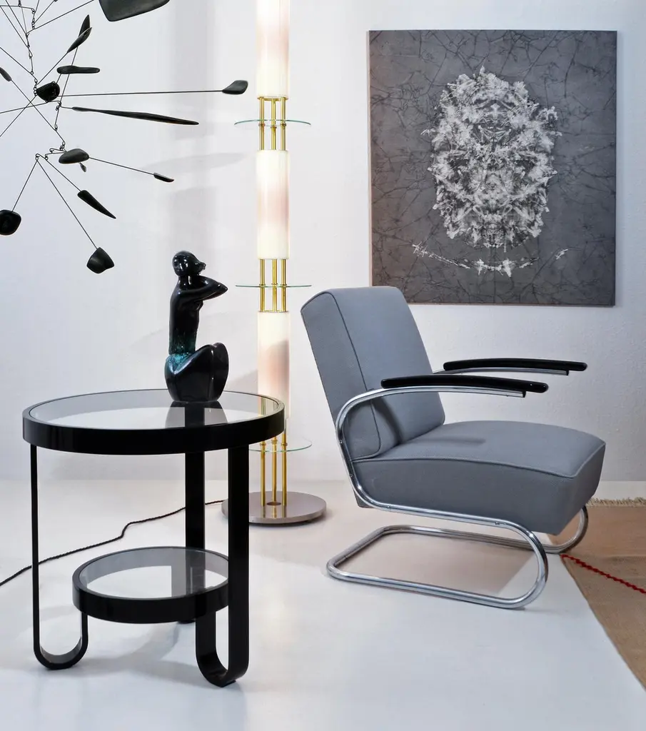 Modern, contemporary, sculptural "Vertigo" floor lamp made of brass, nickel-plated metal, and opal glass. Customizable and available upon request in various materials, finishes, and sizes.