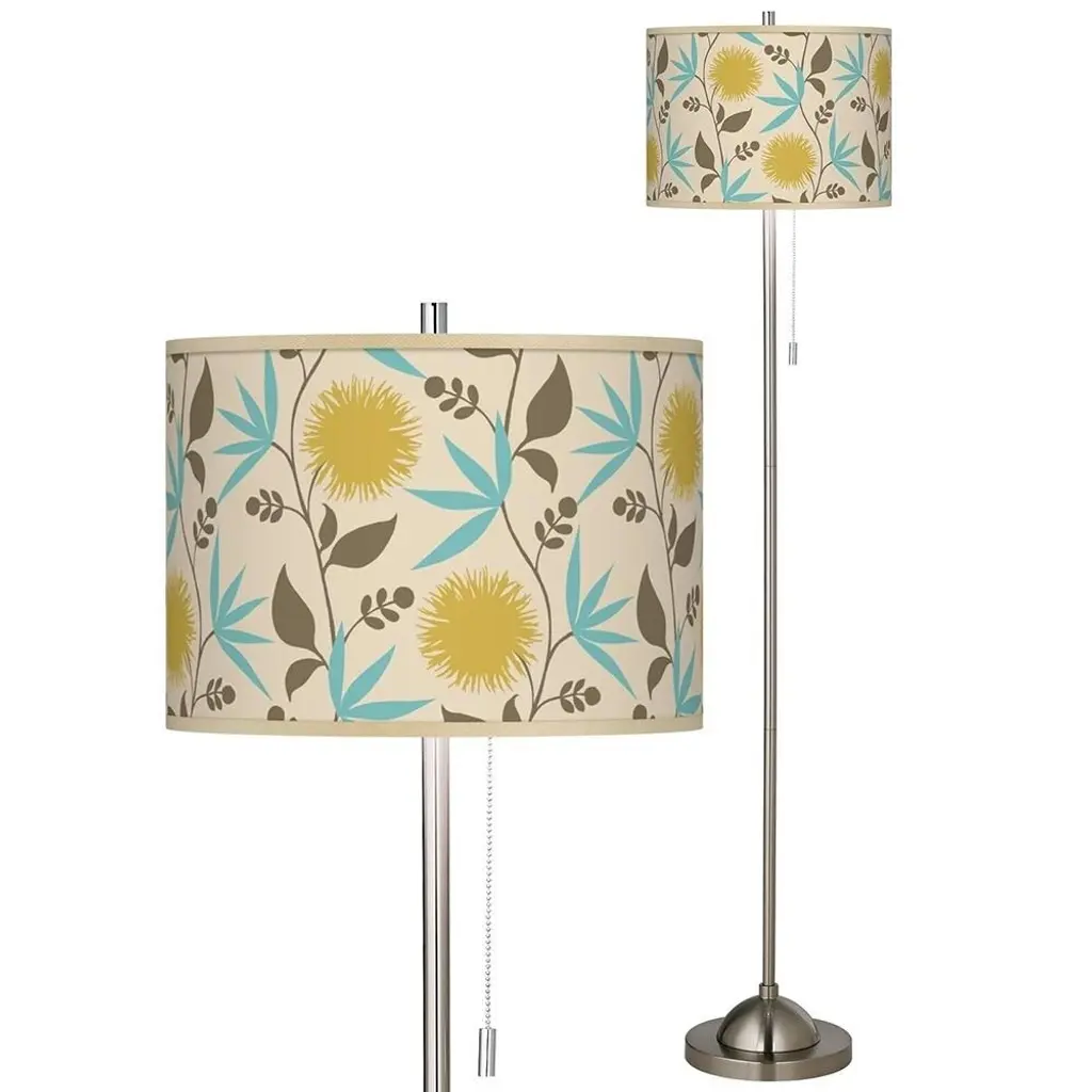 Modern Floor Lamp 62" Tall Brushed Nickel Dahlia Shade Drum - 13" X 62" - Blue - 13" X 62"