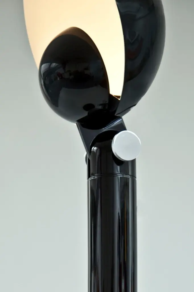 floor lamp of black lacquered iron, shiny. with E27 led lamp or bulb of 60 watt.the lampshade above can be moved from back to front. Interesting reading lamp. Fits in any interior.