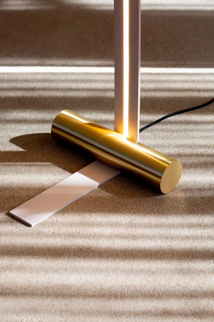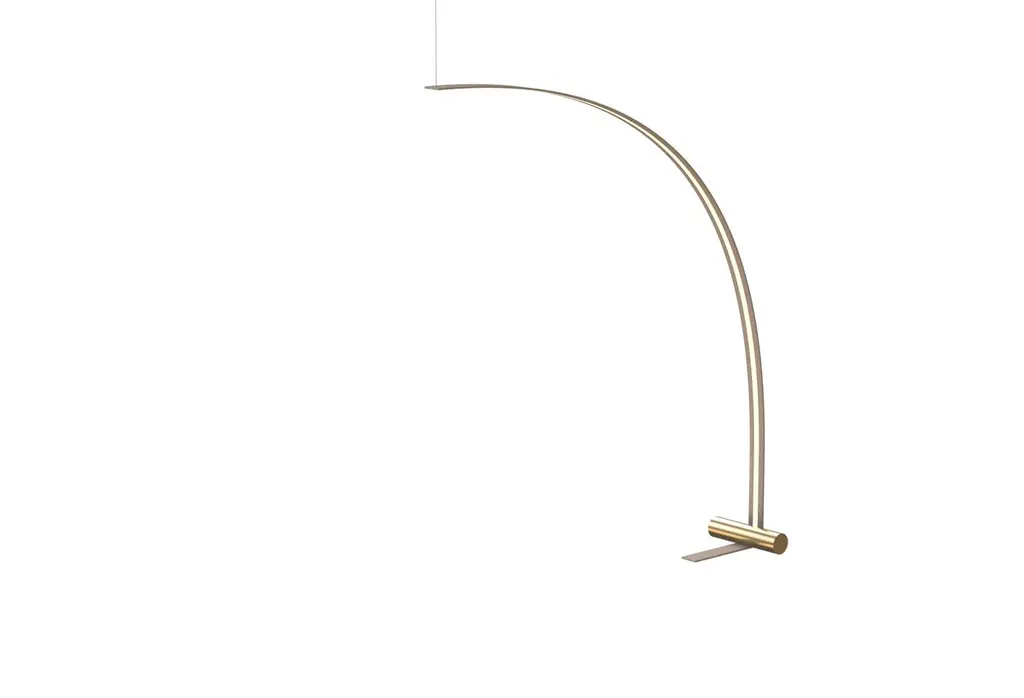 Wall Lamp Nastro 563.64 by TOOYDesigner: StudiopepeModel shown: Beige hardware + Brushed brass cylinderDimensions: H. 207 x W. 180 x D. 38 cmSource light: 1 x LED 220/240V Compliant with US electric systemcable length 300 cmThe Nastro floor lamps sees an epoxy powder coated aluminum band structure accompanied by a cylindric weight that counterbalances its flexuosity, in a refined visual balance. The light source consists of a dimmable LED strip; the cylinders are available in epoxy powder coated metal, in wood and in brushed brass.Studiopepe is a Design + Architecture + Creative Direction agency based in Milan, founded by Arianna Lelli Mami and Chiara Di Pinto.A light to give warmth, a light to give attention, a light to get lost in one’s thoughts. Each reflection, a state of mind. Fascinated by the infinite facets of light, the TOOY brand offers lighting that gives value to the experience of living in spaces through a wide and versatile range of products capable of telling a story.