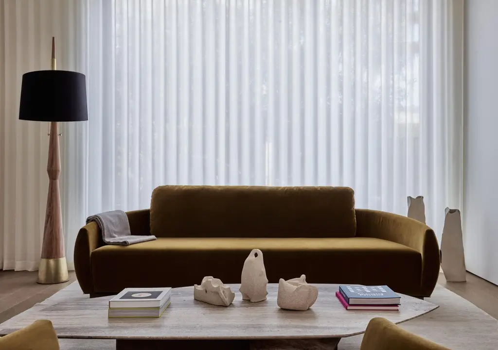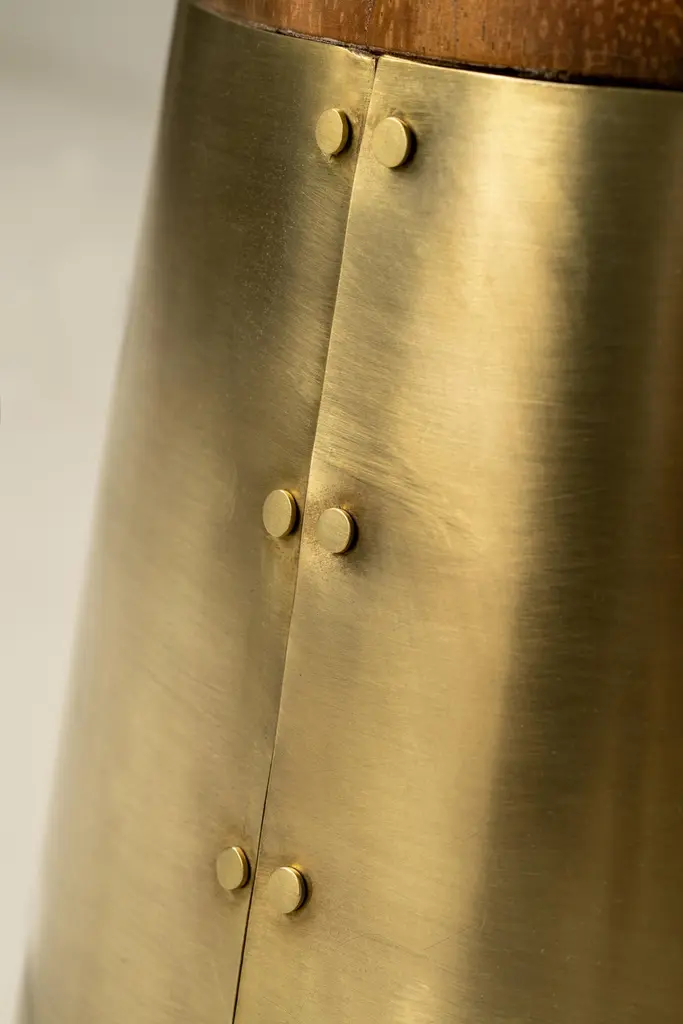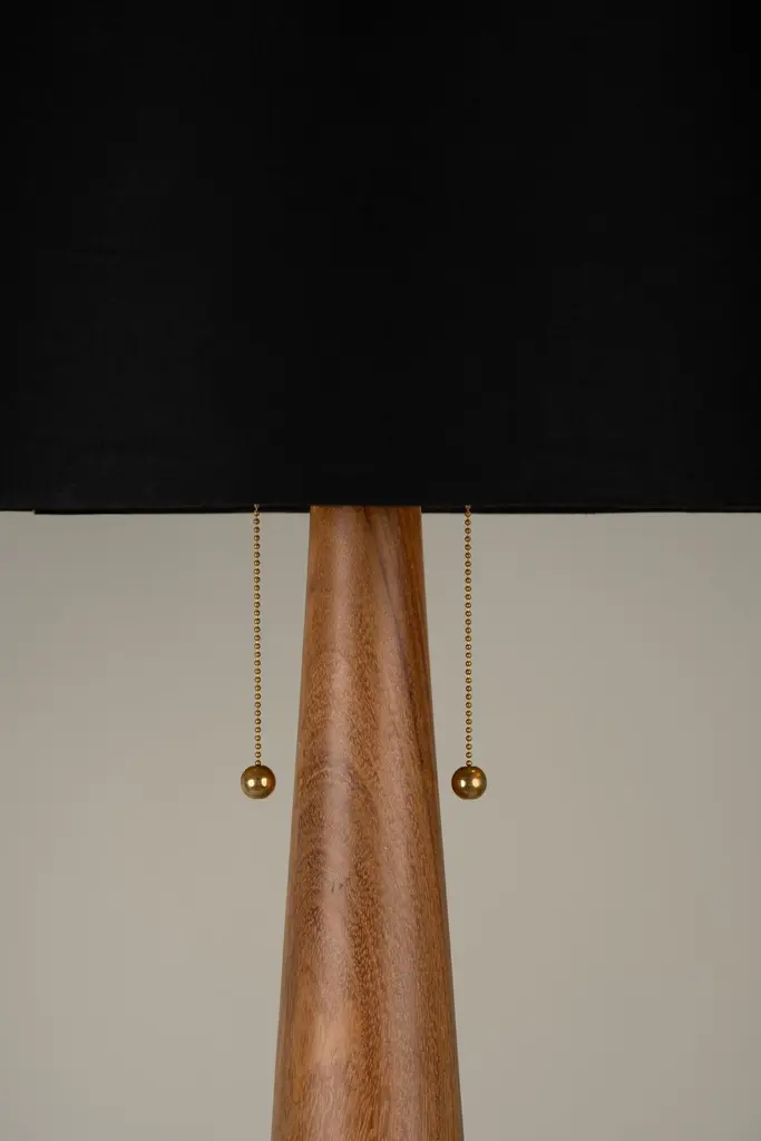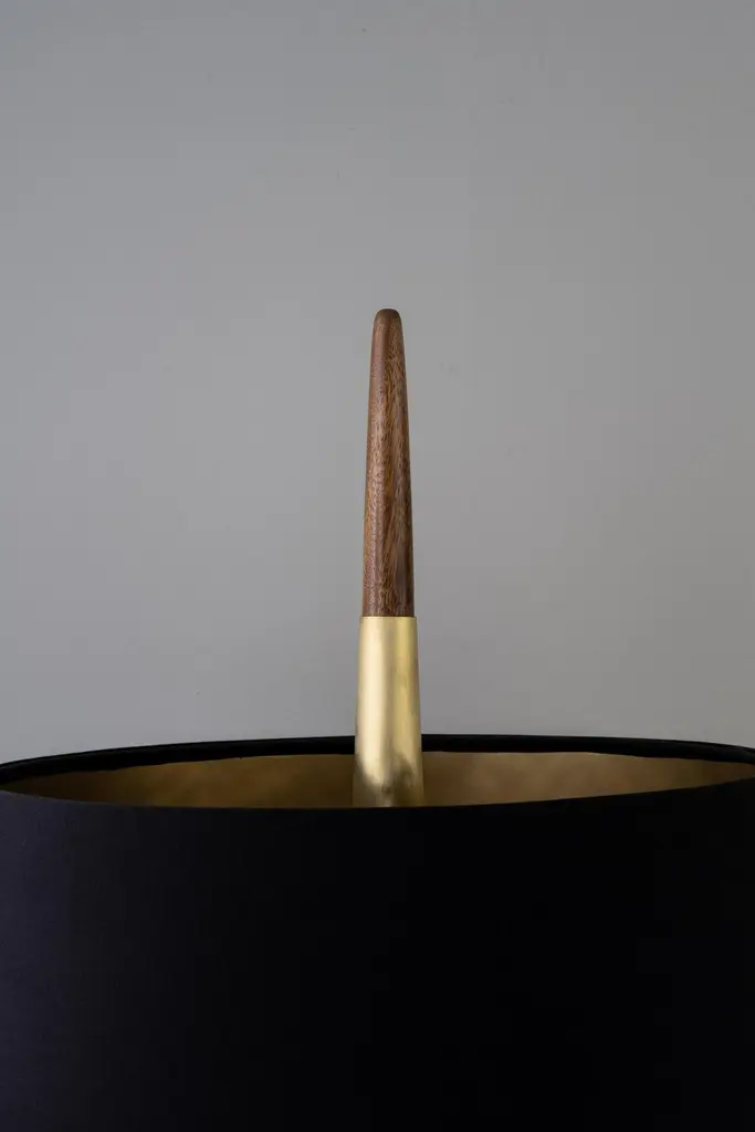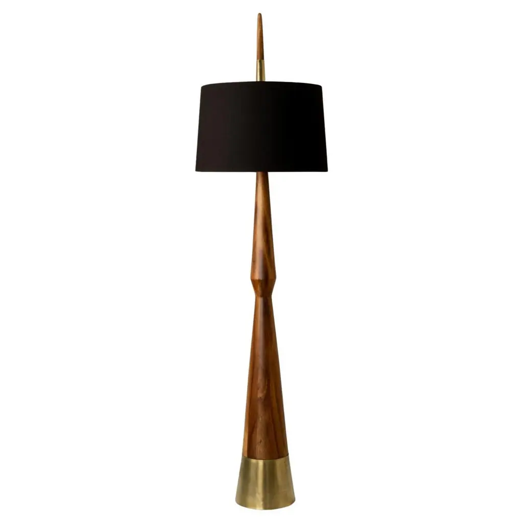 Modern Floor Lamp Natural Parota Wood Hand-Forged Brass Black Fiberglass Shade