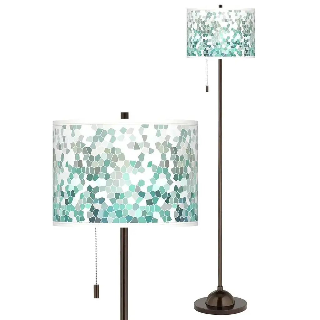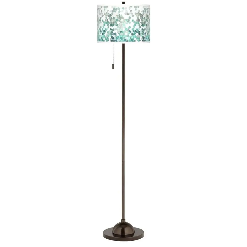 Modern Floor Lamp Tiger Bronze Aqua Mosaic Shade - 13" X 62" - Green - 13" X 62"