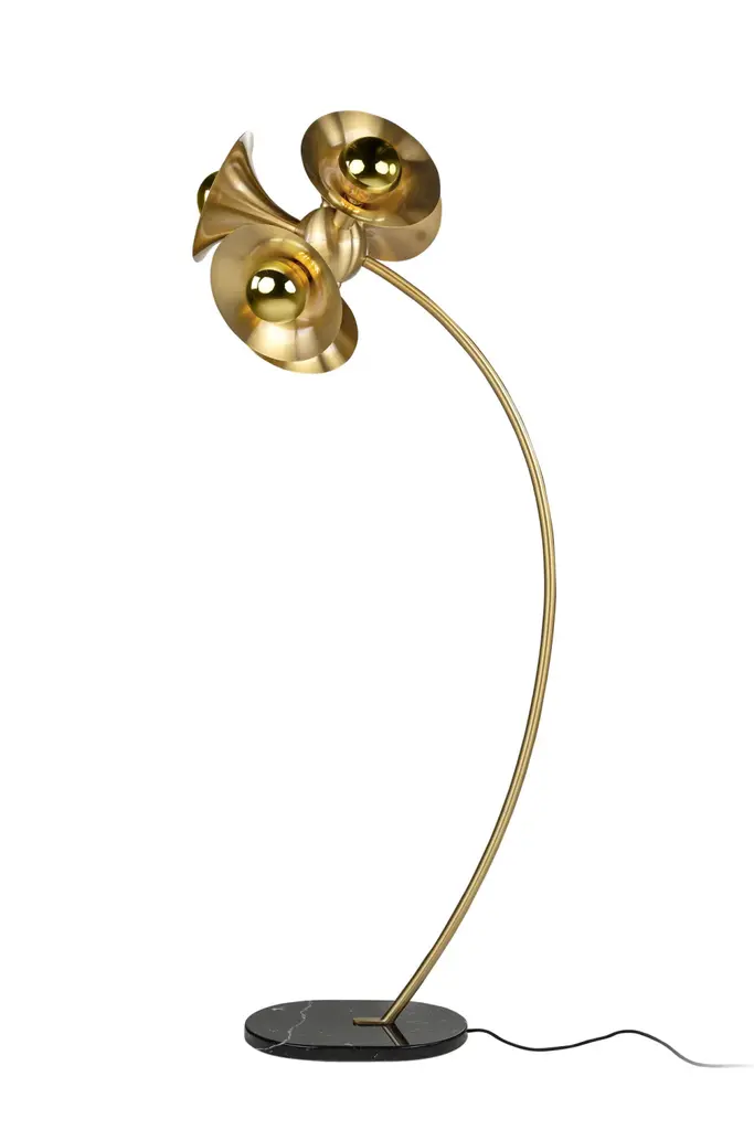 Turn your space into a captivating haven with the Jazz Floor Lamp by Versmissen. With a modern industrial design reminiscent of three trumpet bells connected to a central sphere, this fixture exudes a unique artistic flair. Position it thoughtfully beside a sofa, within lounging areas, or creative spaces to infuse an ambient glow and evoke a contemporary ambiance.