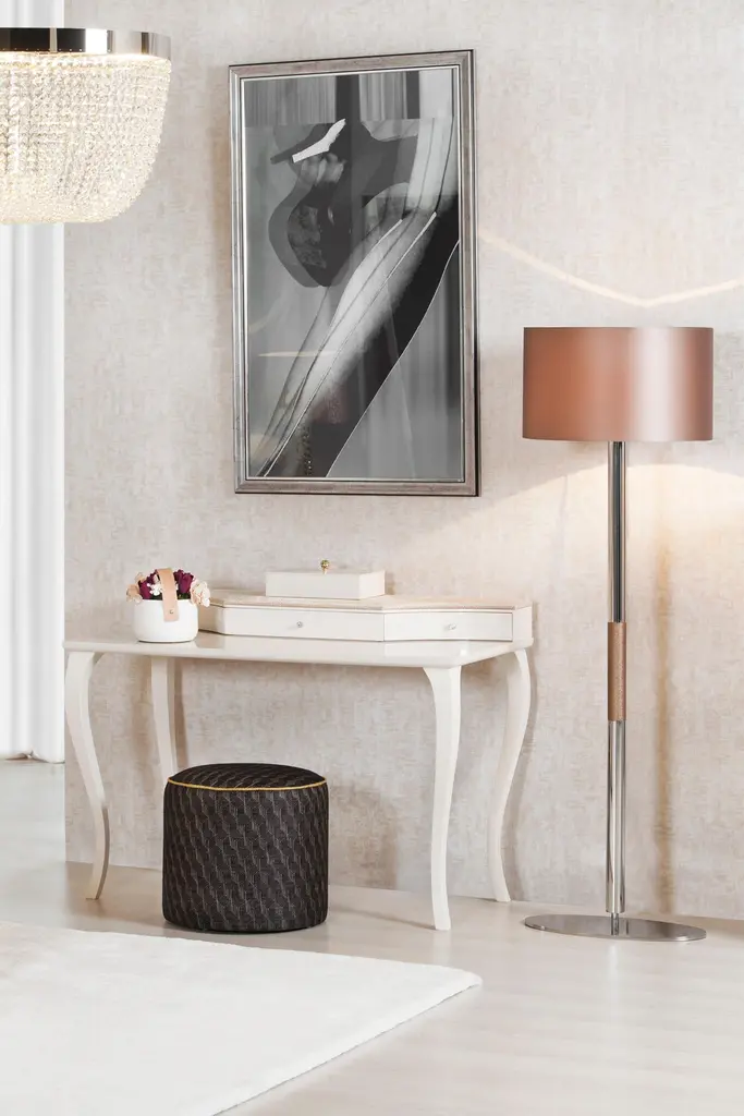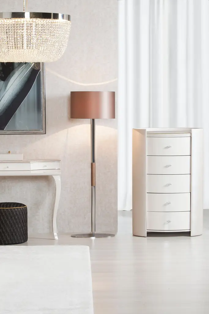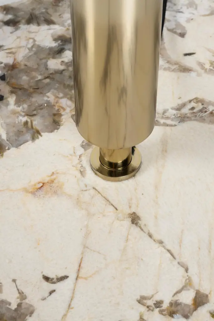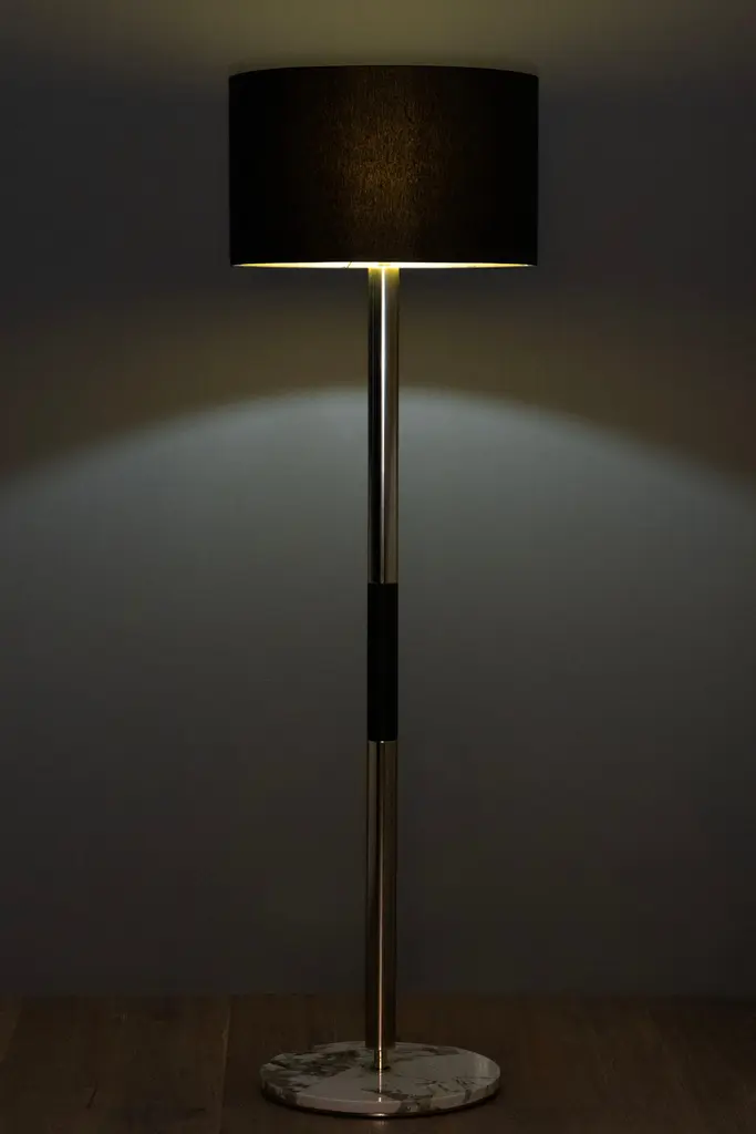 Gau Floor Lamp, Modern Collection, Handcrafted in Portugal - Europe by GF Modern.The luxurious floor lamp Gau creates a subliminal ambience for extraordinary living. The inlay detail in black leather harmonizes with the wonderful contrast between the polished champagne metal stem in stainless steel, the Patagonia Granite base and the black lampshade in satin fabric.Gau Floor Lamp Material CodesME043 Polished stainless steel; champagne colour; ST069 Patagonia granite cream/ white colour; polishedM103886 Black high standard Italian leatherM103852 Black satin fabricE27 LED lampHandcrafted in Portugal - Europe by GreenappleUnique by design, Crafted by peopleFounded in 2005 by Sérgio Rebola and Rute Martins, Greenapple designs and produces in-house luxury furniture for exclusive customers worldwide.Our own in-house production facility allows us to be obsessed with detail, and gives us the freedom to dedicate ourselves to the most demanding tailor-made and customized work. As Rute designs all the unique pieces, Sérgio assures the high-quality standards through the whole process - from design to production; from production to your home. Fine craftsmanship, whether perfected by experienced hands or state-of-the-art machinery is quintessential in delivering top quality experiences.