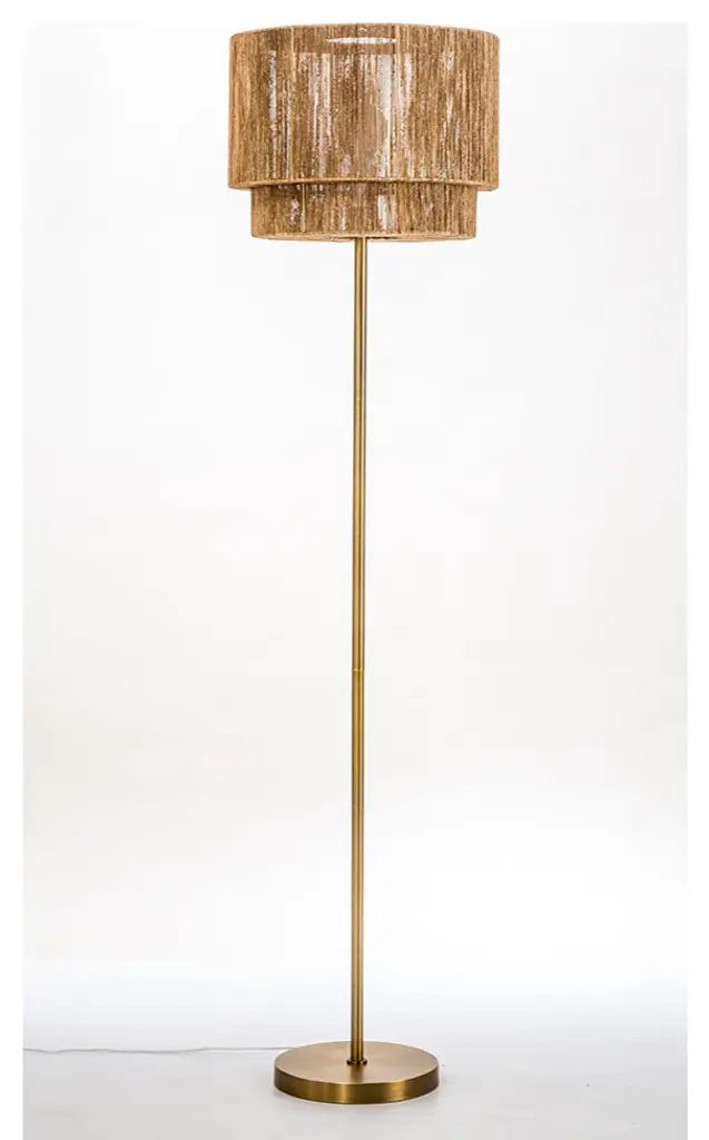 Modern Home Soho Jute Golden Brass Floor Lamp W/natural Jute Rope Shade