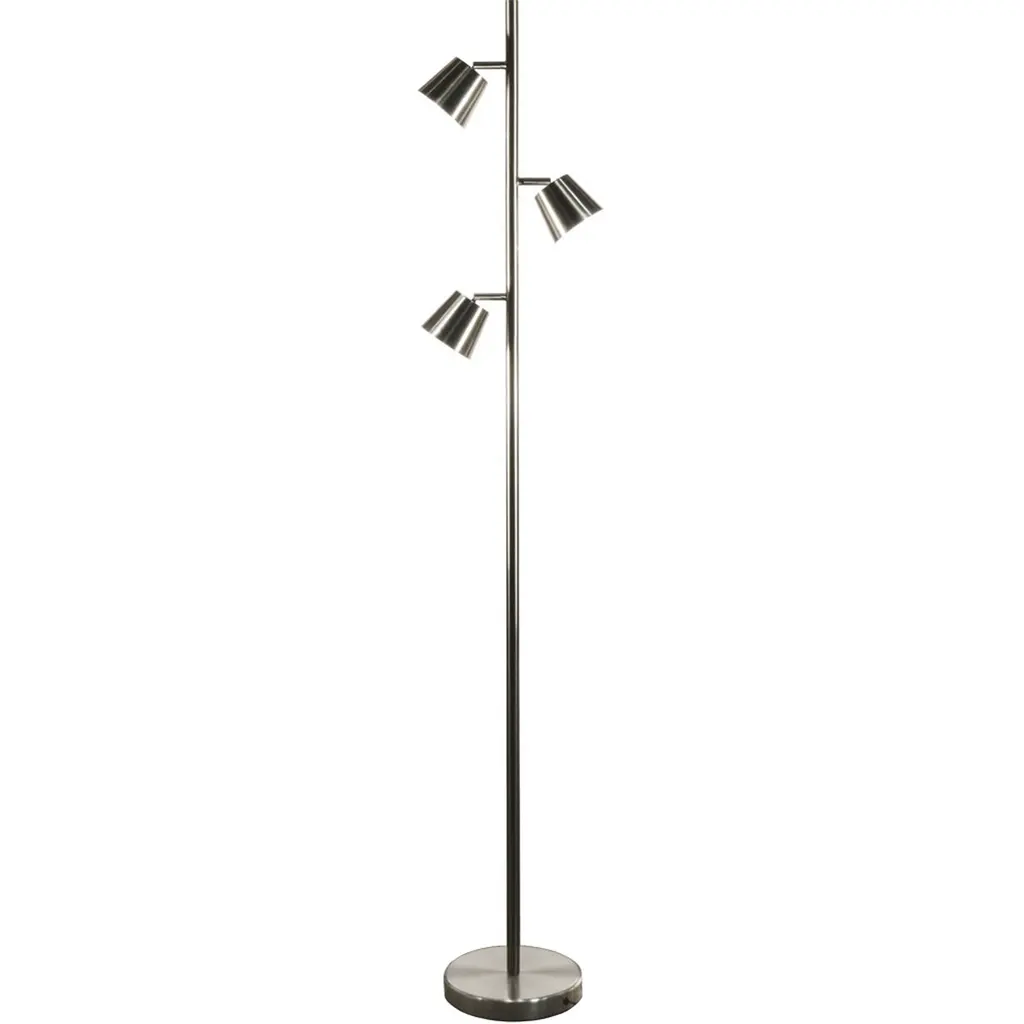 Introduce a tall and proud modern lighting solution to your home with the Modern LED Floor Lamp from Dainolite. Made of smooth metal, this piece starts with a slim rounded plate that acts as a sturdy base for the lengthy and thin rod it mounts. A set of shades rest upon this rod, each at the end of brief arms. Pointing in various directions, the light from the integrated LEDs within the shades presents a bright and full glow in the space, decorating your favorite objects with ease.