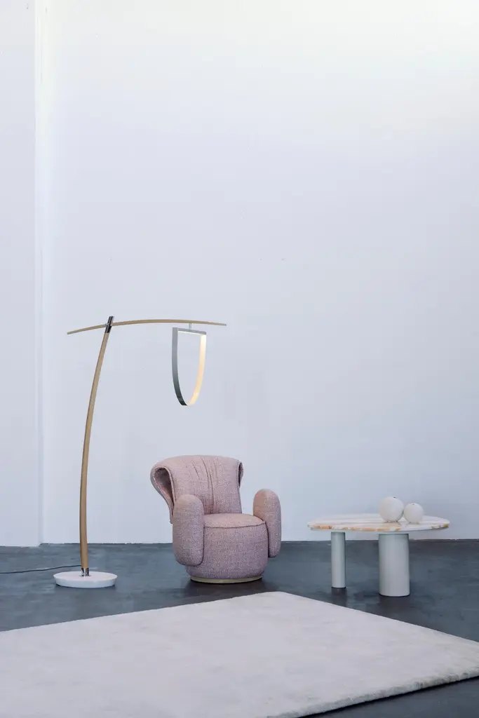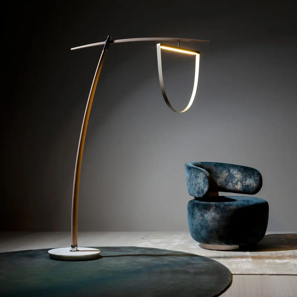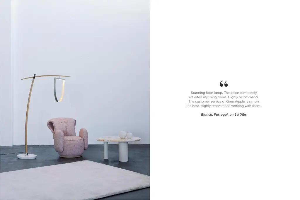 Lima Arc Floor Lamp, Contemporary Collection, Handcrafted in Portugal - Europe by Greenapple.The Lima arc floor lamp brings the creative vision to life through its flowing organic design, enhancing the atmosphere of the modern home. Handcrafted with natural materials in seamless harmony, Lima creates a subtle ambience with its neutral color palette and graceful appearance.Lima Arc Floor Lamp Material CodesWD027 American Oak; open-pore natural colour; matt finishFI073 Champagne bronze powder; high-gloss finishST027 Calacatta Bianco marble; matt finishME001 Polished stainless steel;EL001 LED light stripHandcrafted in Portugal - Europe by GreenappleUnique by design, Crafted by peopleFounded in 2005 by Sérgio Rebola and Rute Martins, Greenapple designs and produces in-house luxury furniture for exclusive customers worldwide.Our own in-house production facility allows us to be obsessed with detail, and gives us the freedom to dedicate ourselves to the most demanding tailor-made and customized work. As Rute designs all the unique pieces, Sérgio assures the high-quality standards through the whole process - from design to production; from production to your home. Fine craftsmanship, whether perfected by experienced hands or state-of-the-art machinery is quintessential in delivering top quality experiences.