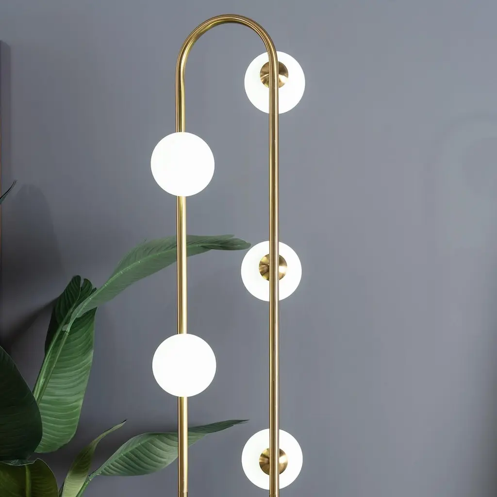 Transform your space with the Modern Living Room Floor Lamp, a sophisticated lighting piece designed to enhance contemporary living rooms, bedrooms, and office spaces.Featuring a modern design, this floor lamp combines sleek lines and a minimalist aesthetic to enhance your decor. The Artema white finish adds a clean and elegant touch, making it a versatile piece for any room.The tall corner design makes it a perfect fit for various spaces, providing ample lighting and enhancing your decor. Choose the Modern Living Room Floor Lamp for a perfect blend of simplicity, elegance, and modern design. It's the ideal piece to enhance your home decor with its unique style and bright lighting. Product Features: Product Details: Product Dimensions: 11.00 "D x 11.00 "W x 66.00 "H, Weight: 13.00 lbs Package Dimensions and Package Weight: 14.00 "x 45.00 "x 7.00 ", Weight: 14.00 lbs. Main Material: Metal Scenarios : Living rooms, bedrooms and other indoor spaces Product assembly: easy to assemble Maintenance: wipe with a dry or damp cloth Bulb Base: G9/Bi-pin Switch Type: Foot Switch Base Finish: Metal Shade Sizes: 4.7 in x 4.7 in x 4.7 in Number of Lights: 5