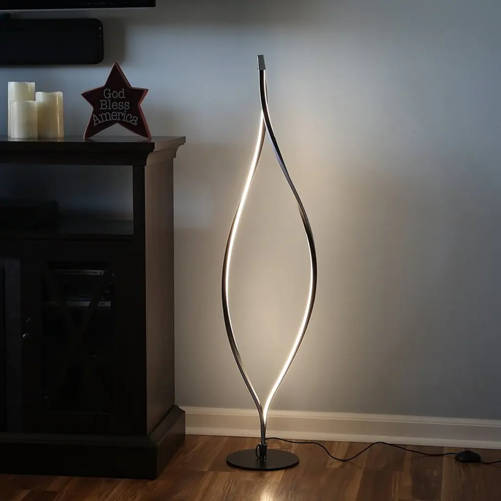 The futuristic vibe of the Twist Floor Lamp lends clean architectural lines to any space. It spirals to 43 inches of height and fits easily into any corner of the room. Tap the foot-switch dimmer to adjust the light. These lights are made using semi-conductor technology instead of filaments or neon gas, so they are cool to the touch even if they''ve been on for hours. They also last longer and with reduced power consumption, they offer a more cost effective way to light your home. Made using non-toxic material, the LED Twist Lamp is more environmentally friendly than fluorescent strips known to contain toxic chemicals such as the pollutant mercury. Since advanced LED technology lasts longer than old school light bulbs, the stylish Twist accent lamp will reduce the amount of resources used to keep homes. This dimmable LED lamp is versatile and can be used in any location whether it''s to make your house or apartment feel more like a home, or to make an office space more comfortable. Its unique design makes for a great conversation piece while enhancing any kind of traditional, urban, contemporary, or minimalist decor.- Modern & Stylish Twist LED Floor Lamp- Unique design- Light in Weight- Twist & Shin- Measure:45 x 12.4 x 6.5 inches