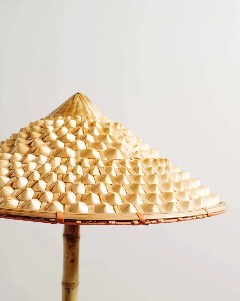The World’s Fair Collection is a family of fixtures handmade from sustainably sourced materials inspired by the 20th century’s most illustrious cultural expo.Model No. 011 features a woven-grass conical shade atop a lacquered bamboo column and coiled-seagrass base. Brass fittings and a cloth-covered cord complete the modernist profile. Made-to-order by hand in New York by artist Christopher Tennant.UL and CUL listed.