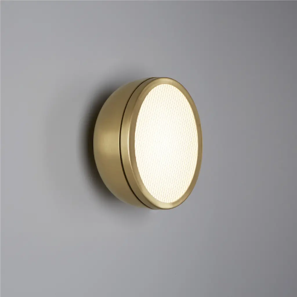 Collection of contemporary hanging, wall , floor, table, side and ceiling lamps with a painted dome and ring either painted or finished with brushed brass, copper or pewter. The bright diamond screen is made of plexiglass to better spread light out. The collection presents lamps available in three sizes for single-unit or dynamic compositions. These lamps are very versatile and fit any kind of setting, thanks to their simple shape yet rich materials.