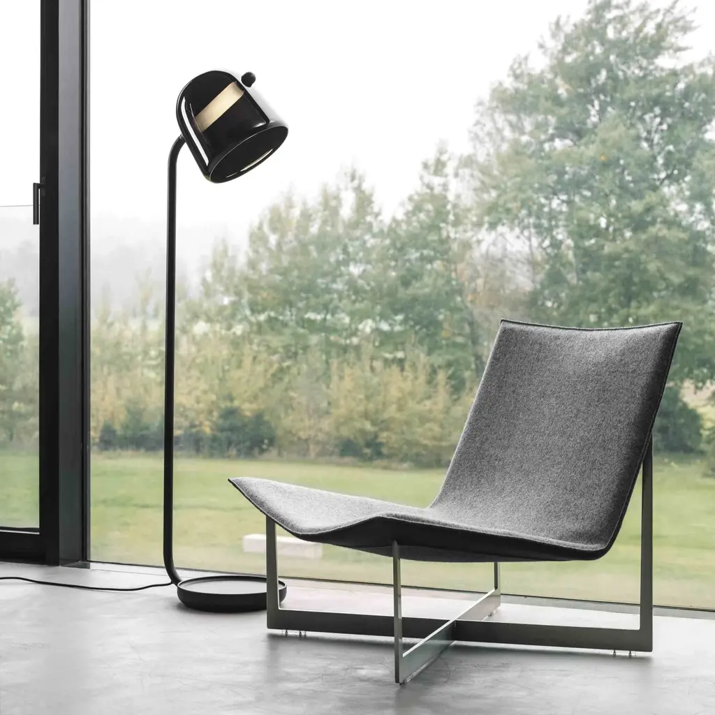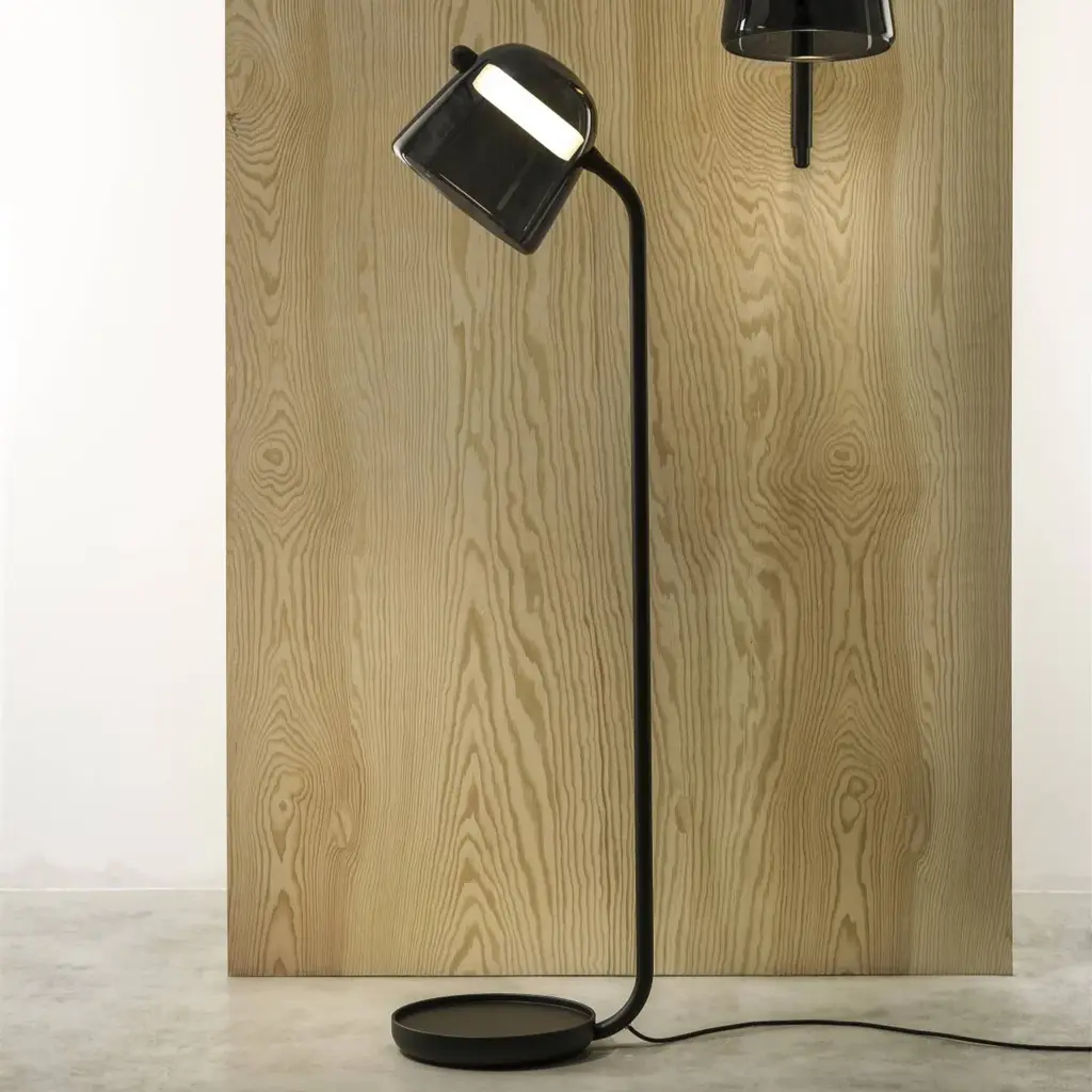 Graceful and grounded, the Mona LED Floor Lamp from Brokis brings sculptural presence and ambient warmth to larger interiors. Designed by Lucie Koldova, this striking piece features a generous handblown glass shade penetrated by a sleek, tubular LED light source—a bold gesture softened by the gentle curve of the glass. The minimalist metal frame adds balance and stability, allowing the luminous form to take center stage. Perfect beside a reading chair, sofa, or in open living spaces, Mona casts a soft, atmospheric glow while doubling as a refined work of art. Highlights