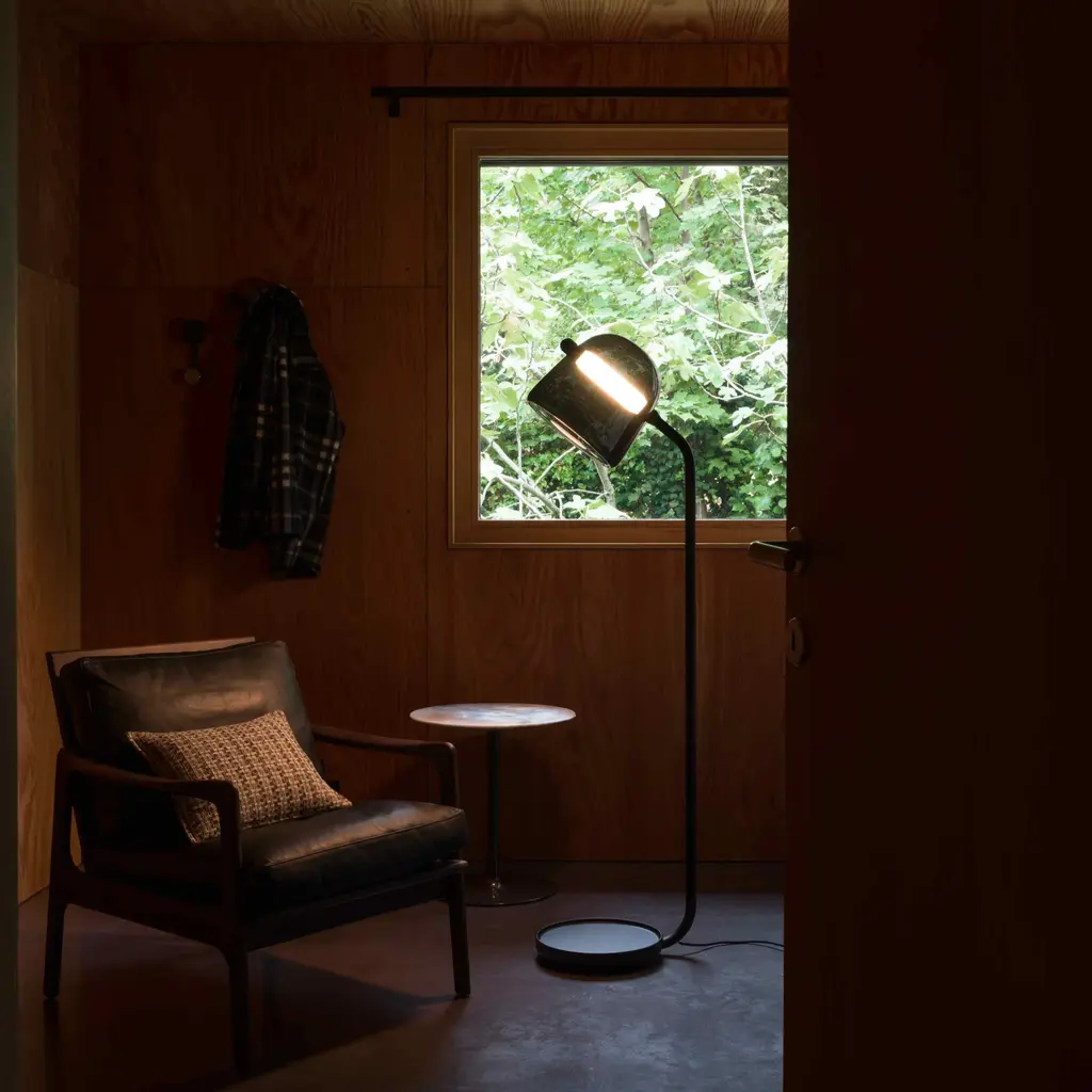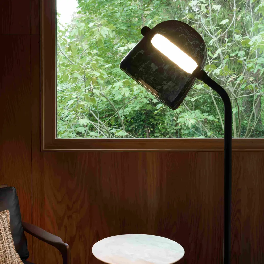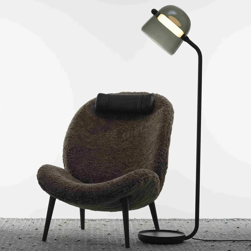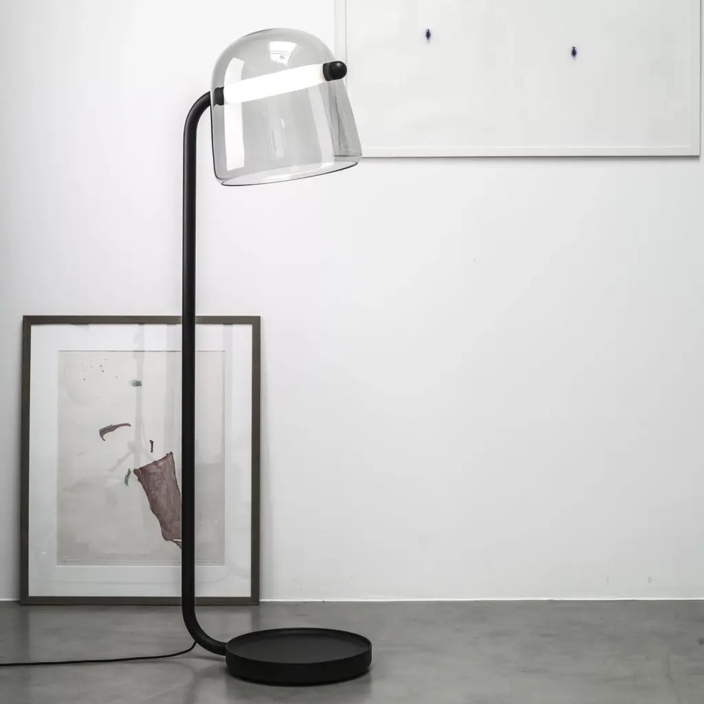 Graceful and grounded, the Mona LED Floor Lamp from Brokis brings sculptural presence and ambient warmth to larger interiors. Designed by Lucie Koldova, this striking piece features a generous handblown glass shade penetrated by a sleek, tubular LED light source—a bold gesture softened by the gentle curve of the glass. The minimalist metal frame adds balance and stability, allowing the luminous form to take center stage. Perfect beside a reading chair, sofa, or in open living spaces, Mona casts a soft, atmospheric glow while doubling as a refined work of art. Highlights