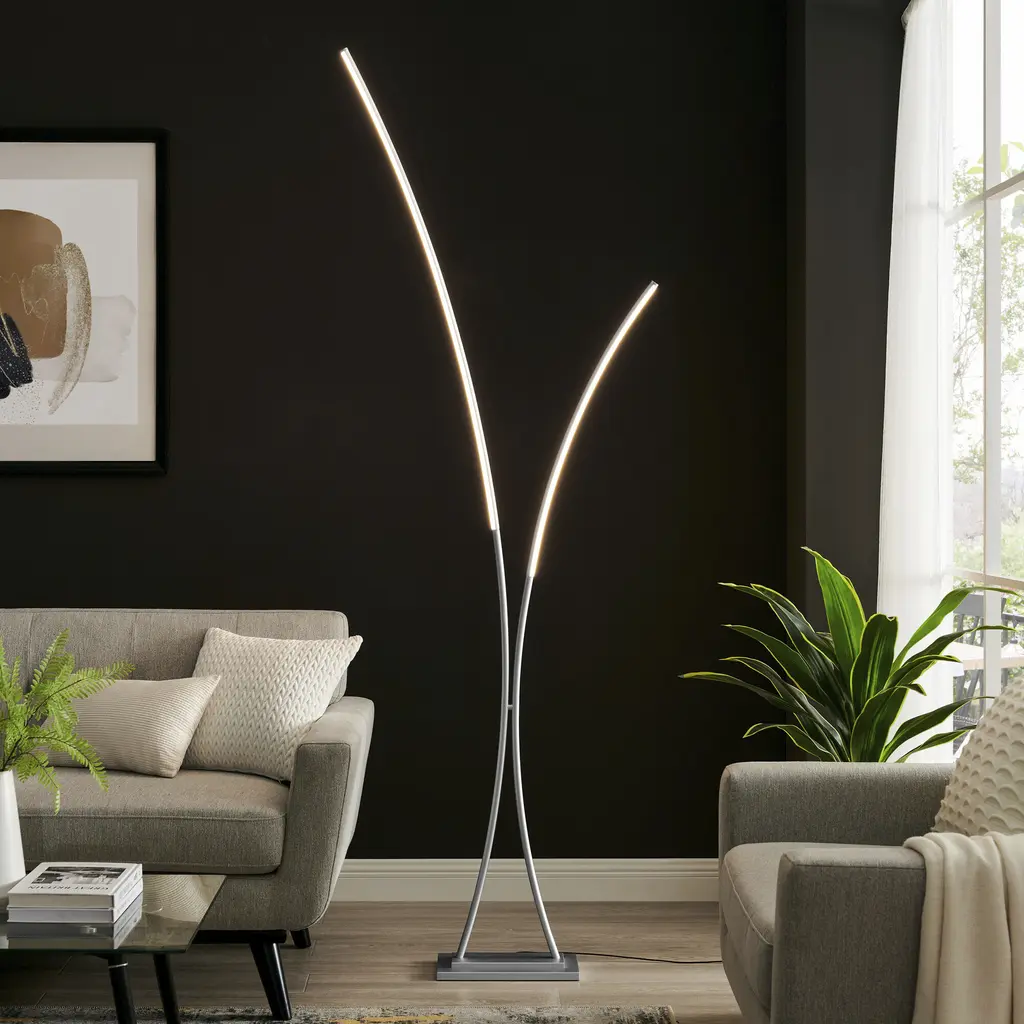 Led 2-lite Floor Lamp, Silver, Type Led 20w