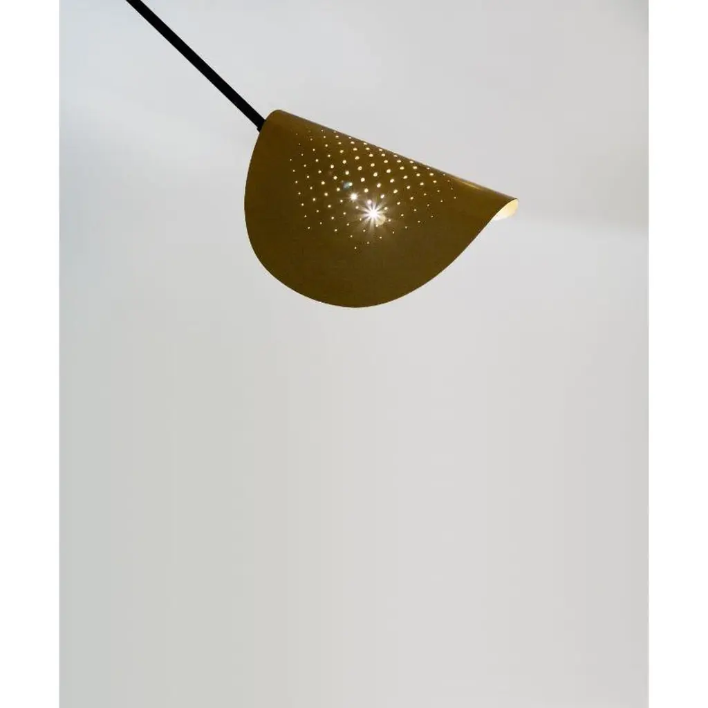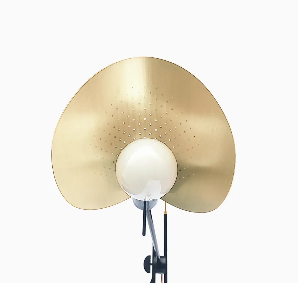 Moon floor lamp (S) by SB26Dimensions: W 125 x D 200 x H 165 cmMaterials: Steel, copper, brass gilded with pure goldMoon is balanced in space and refined to its worked ends which gives it bright and colorful reflections.This reader plays also on the contrasts, whether on its construction, between the industrial ironwork and the ironwork of art, but also in the games of rhythms and materials. The entire steel structure has an oiled finish and silky touch.The ends are made of copper and brass gilded with pure gold.SB26 is the brand created in 2018 by the designer Samuel Accoceberry and the blacksmith Bruce Cecere. This birth originates in the desire of Bruce Cecere to design and present an exceptional object during a program of co-creation Craftsman / Designer.For this, he chooses Samuel Accoceberry, renowned designer not only for his collaborations with major brands but also for his concern to promote the great know-how and their authors. Together, they explored the limits of metal work, such as goldsmiths, to create the line of luminaires Moon which one of the pieces was presented at the Milan Salon in 2018.To continue their collaboration and develop new projects, they create their joint signature SB26 (Samuel Accoceberry & Bruce Cecere Studio).