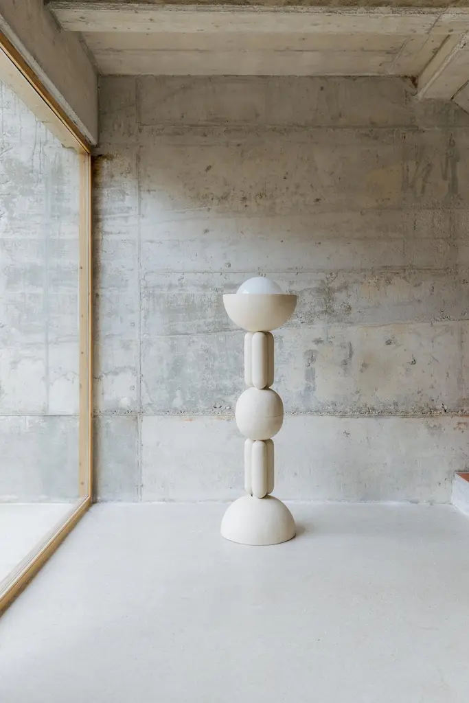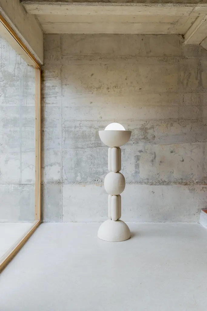 Floor light XL by Lisa AllegraDimensions: ø 47 x 146 cmMaterials: ClayOne of a kind.Also available in Licorice color. Does not wire for USA.Born in 1986 in Paris, Lisa Allegra has earned in 2010 a degree in furniture design from the École Supérieure des Arts Décoratifs. She has worked for Tsé&Tsé Associées and Constance Guisset while working as a freelance designer and made furnitures and objects, which has been shown by the VIA or Nelly Rodi. Following a competition, the brand FLY has edited her coat rack ITA. After travelling through Asia, the United States and Brasil for almost a year, she joined in 2014 the visual merchandising team of the brand Diptyque Paris. She was in charge of all of the creation of boutiques’ windows worldwide. She now creates her own brand of ceramic objects and is co-founder of BCN CLAY STUDIO. The choice to work with a specific material, clay, allowed her to be in a logic of small series, durable objects and to control the manufacturing process. Her pieces are designed to be developed in collection and declination but each one is unique because she shapes them by hand. This choice to correlate her profession as a designer with a know-how allows her to meet and collaborate with partners and brands who want to promote and support a different and responsible model. Partners: Brutal Ceramics, Bon Jour Tattoo Club, Bonne Gueule, Carbon Paris, Le Centre des Monuments Nationaux, La Chaîne de l’Espoir, Nous Paris, Sessùn, Sessun Alma, Fracas Gallery, Dose Paris, Amelie maison d’art, Merci Paris,She is still collaborating to scenography projects, furniture conception and spaces design.