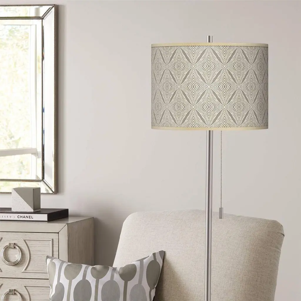 Moroccan Diamonds Brushed Nickel Pull Chain Floor Lamp - 13" X 62" - Grey - 13" X 62"