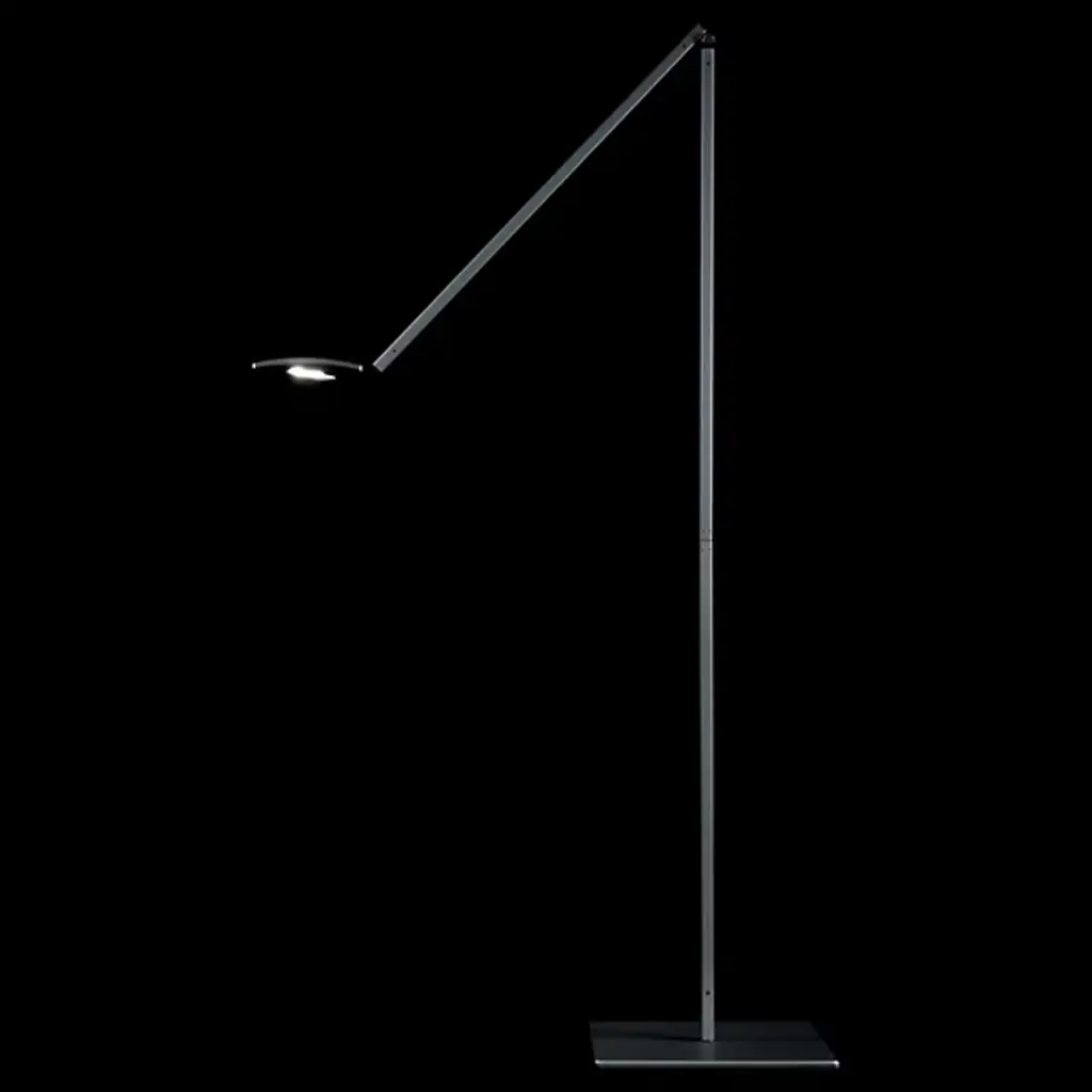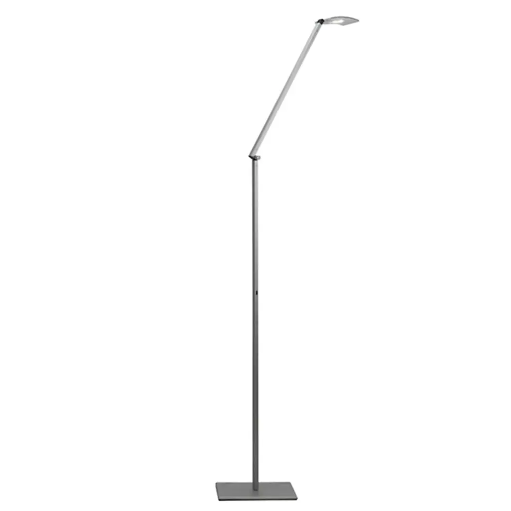 Infinite flexibility. The Mosso Pro LED Floor Lamp by Koncept is a perfect blend of ultra-modern design and energy-efficient technology. Made of aluminum, it showcases a tubular stem with a square base and supports a flexible arm at the top that can rotate 180-degree up and down. The square lamp head in a slightly curved profile features a plastic shade. It utilizes LED technology and includes a built-in touchstrip that allows you to customize the light intensity, while the USB port can be used to charge devices.