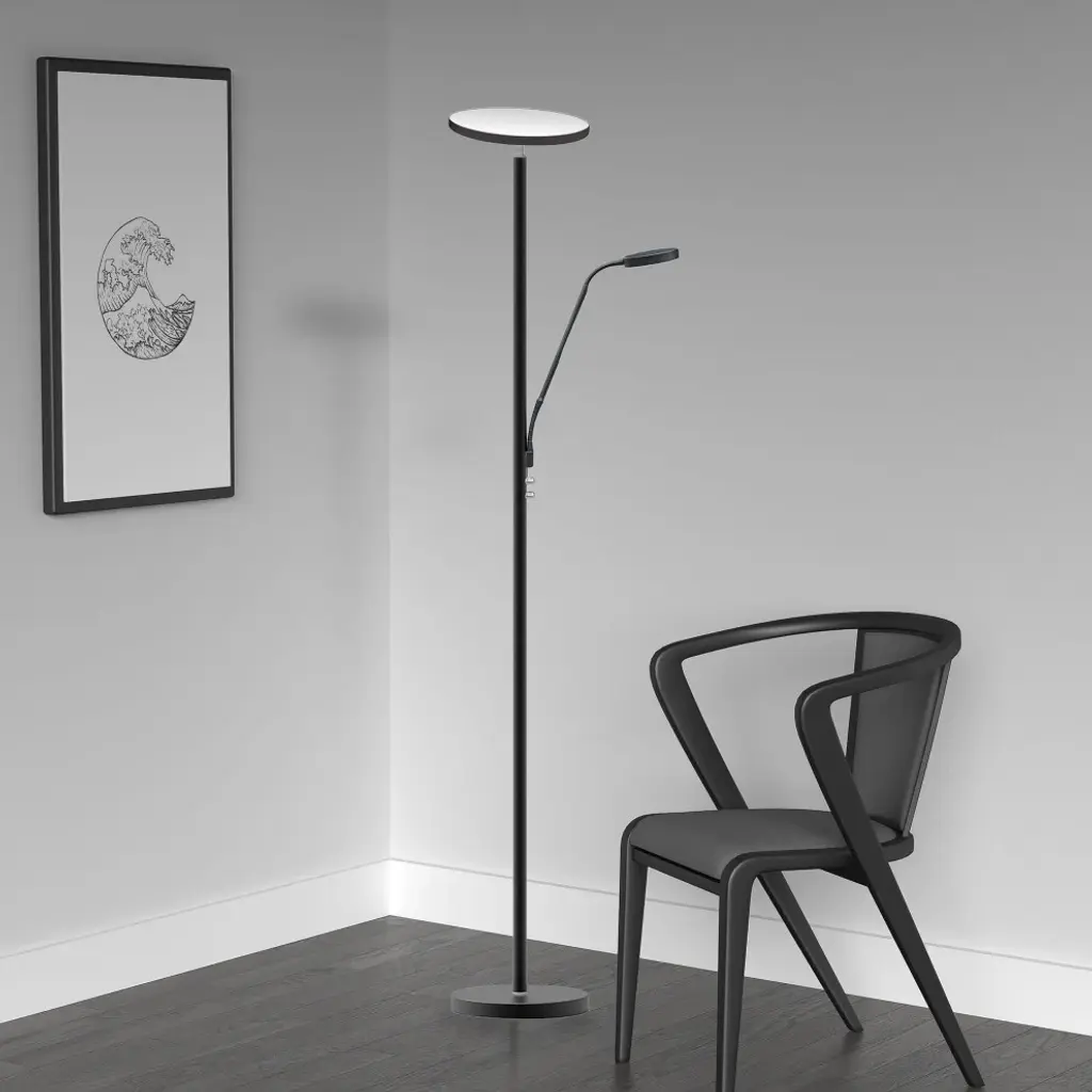 Mother and Son LED Floor Lamp, Satin Black Finish Bulb Type:LED Number of Bulbs:1 Bulbs Included:Bulbs Included UL Listed:UL Listed Bult Wattage:18 Hardwire or Plug:,Plug