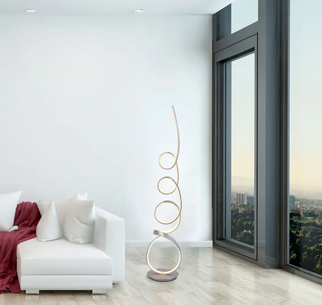 "Light up your living room, bedroom or office with this Sleek, Modern and Unique Design "MOZART II" LED Dimmable Floor lamp from Artiva USA. Artiva "MOZART II" LED Dimmable floor lamp Design is a perfect addition to any room with Modern or Contemporary decor. The "MOZART II " floor lamp holds 47W LED(2500 Lumen) and warm LED Dimmable lights( 3000K ). The artistic curved design adds a soft note to any of your decor. Standing over 61"H, the fixture has a statuesque appearance and draw attention. The Artiva "MOZART II" LED Dimmable floor lamp allows you to place the light wherever you need it and provide ample lighting for creating a spot light , in the setting next to the couch, in the corner or in the center of your living room. Super Bright and long lasting integrated Dimmable LED included. Over 25000 hrs rated(that is over 20+ years base on 3 hrs/day usage) Perfect conversation pieces. Remote Control Dimmer Switch included. US Patent Pending Design.Features exclusive 47W (2500 Lumens) integrated Super bright & long lasting 61"H LED Floor lamp . 25000 hrs rated (that is over 20+ years . never have to change bulb again.Compare to 200W lamp, this Artiva LED lamp uses only 47W of electricity and will save you over $35 every year off of your electric bill (based on 6-hours per day usage and 11 cents per kilowatt)Sleek, Modern and Unique Design. Beautiful ANODIZED ALUMINIUM finishRemote Control Dimmable switch with Foot On-off Switch. Smart Outlet Compatible . Works with Smart outlets that are Alexa, Google Home assistant or Apple Home Kit enabled to turn the lamp on/off.US PATENT PENDING DESIGN"
