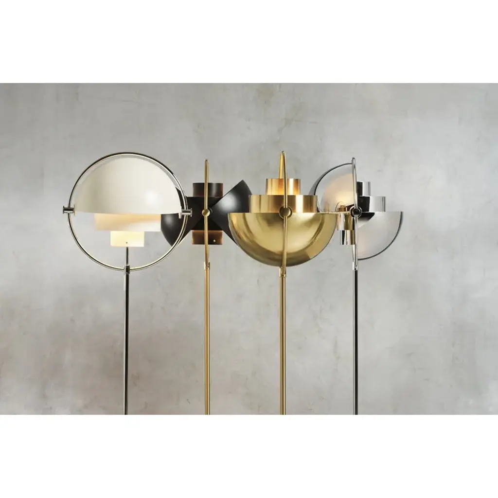 GUBI’s Multi-Lite, designed by Louis Weisdorf in 1972, is an elegant floor lamp that plays with geometric shapes. As its name suggests, the lamp has multiple uses and configurations: by rotating the two shades around the cylindrical middle light can be cast up, down and to the sides. Manufactured originally by Danish Lyfa, Multi-Lite features a timeless and sculptural metal design that makes a bold addition to many kinds of interiors.