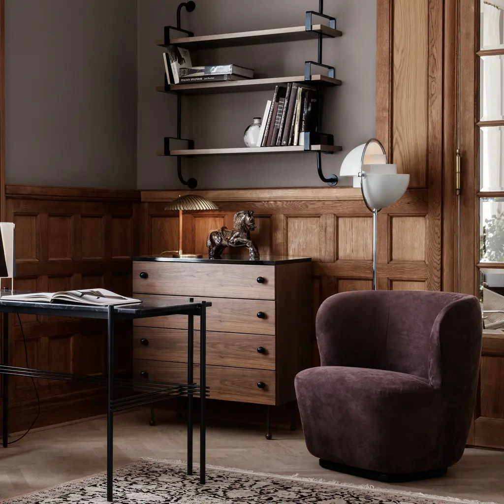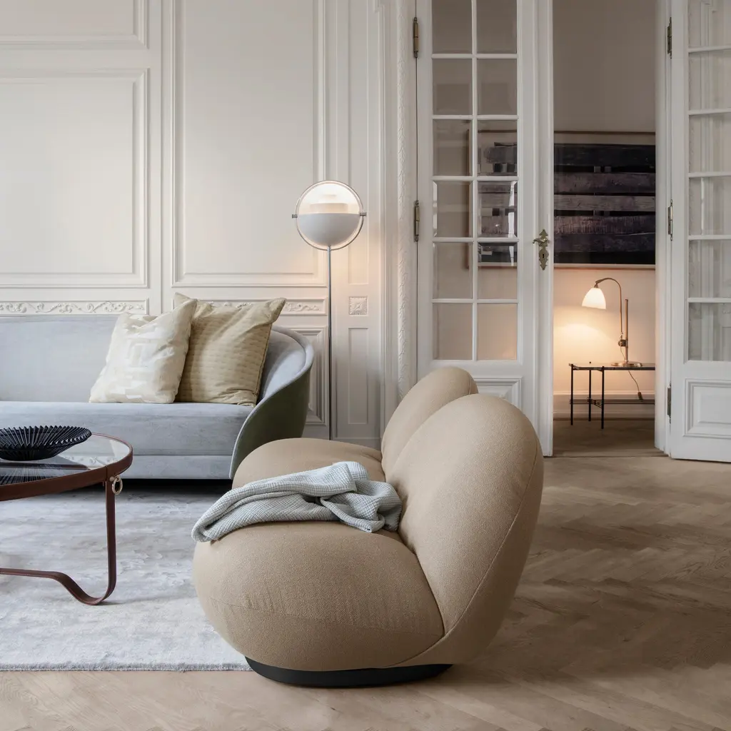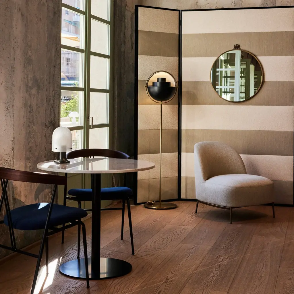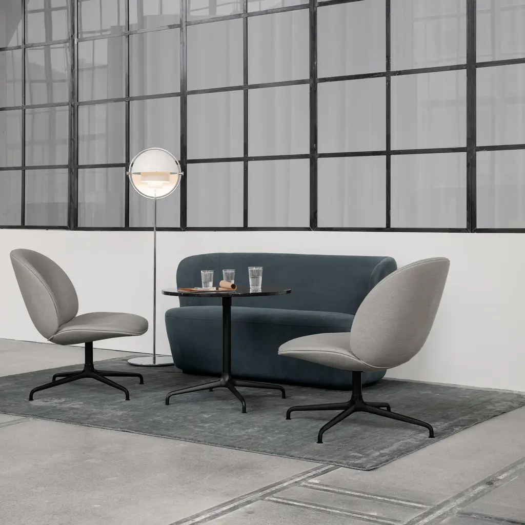 With an iconic silhouette derived from multiple rounded metal shades, Louis Weisdorf's circa-1972 Multi-Lite makes for an standout floor lamp. With repetition of a single element as a constant theme, the designer focused on both form and function in the golden era of Danish style. The rotating metal shades attached to the brass framework can be aimed up or down—or in combination—to direct the light as desired. Weisdorf's equal emphasis on utility assures that the eye is also shielded from direct bulb glare at all angles.