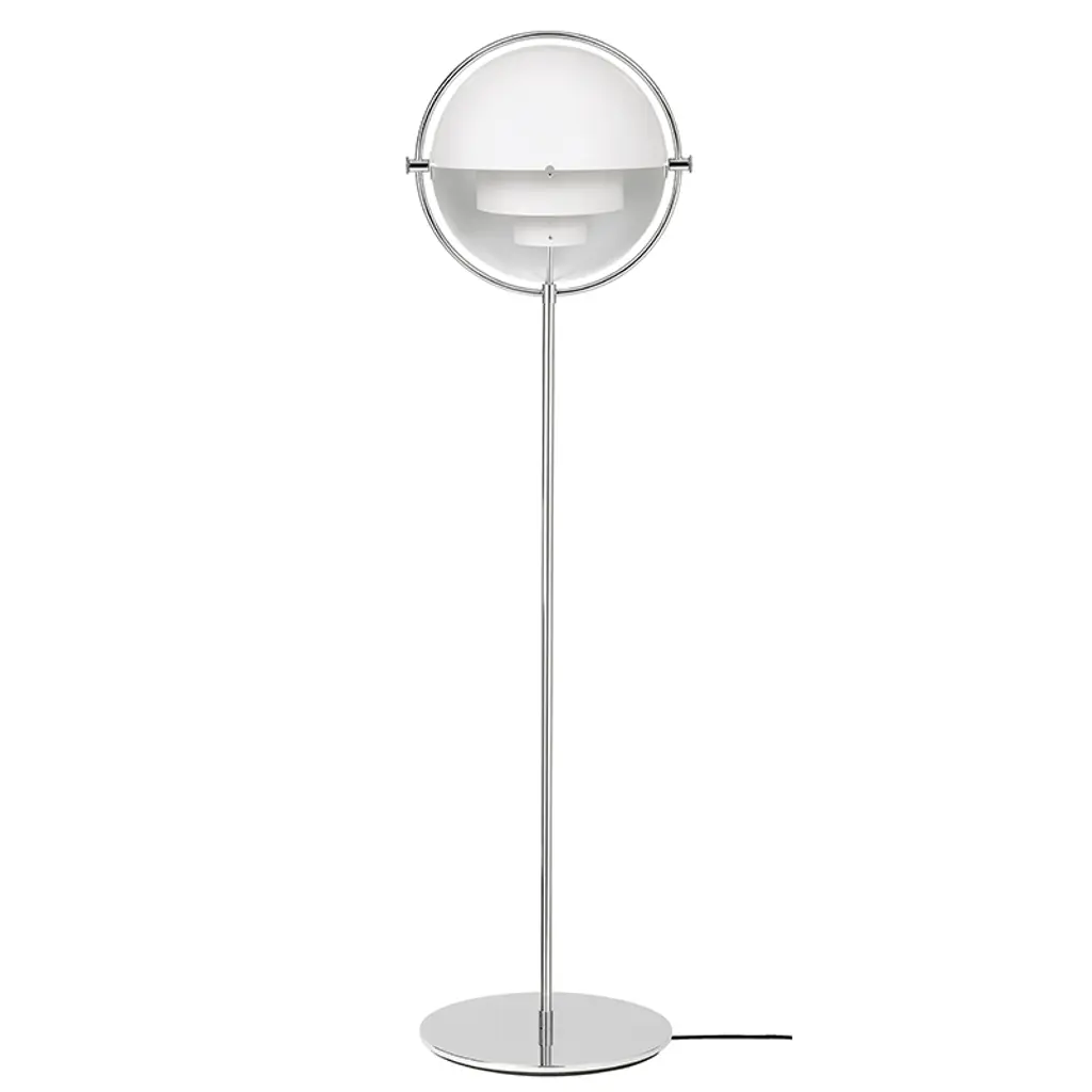 The Multi-Lite Floor Lamp can be directed upwards, downwards or project an asymmetrical art light.Composed of two individual rotating shades, the Multi-Lite Floor Lamp stems from an original design from 1972. This floor lamp is a sculptural, versatile piece that perfectly blends design and function.Produced in Denmark by Gubi - a Copenhagen-based purveyor of historic and contemporary designs.