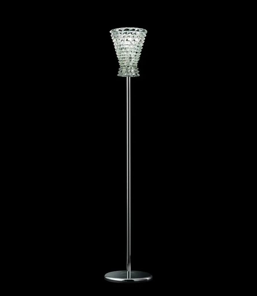 Inspired by an original idea by Ercole Barovier in the 1940s and created using the “rostrato” technique he had just invented, the Ercole floor lamp is distinguished by a rich play of light that creates a sense of luxury and richness.
