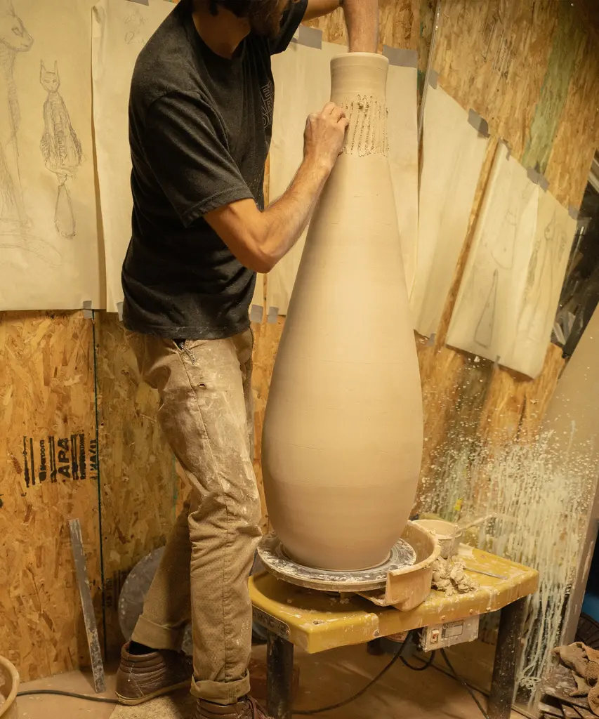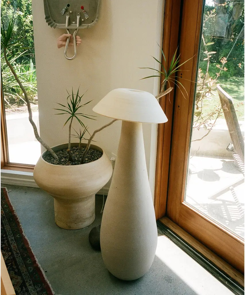 Designed with the intention of creating a light that is multi-directional within it’s own form and functions without additional hardwares.A hand-thrown ceramic lamp that is comprised of two pieces. Using a ball joint design, the upper rests on the base allowing for movement of the light in any direction. This helps the user shift the shade as needed, creating an experience that is both functional and intimate. Like all handmade pieces there is natural variation in the clay, firing and shape. No two items are exact matches, please consider this when ordering.