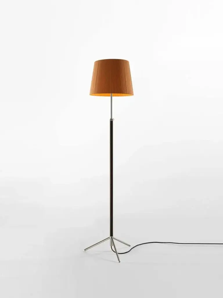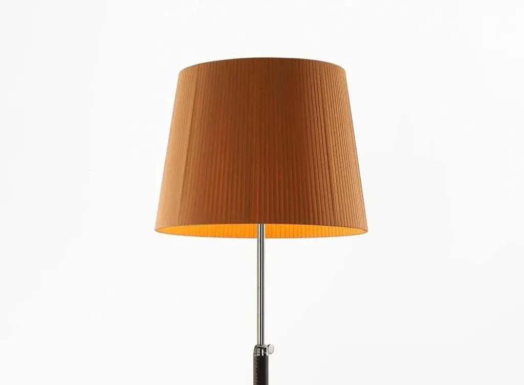 Mustard and chrome pie de salón g3 floor lamp by jaume sans. Dimensions: d 40 x h 120-160 cm. Materials: metal, leather, ribbon. Available in chrome-plated or polished brass structure. Available in other shade colors and sizes. This slender synthesis of traditional lamps is a sparkle of timeless elegance created in a context of the avant-garde. The combination of materials with its symmetrical, leather-wrapped centre shaft, its choice of three shade materials and eight colour options make it a paradigm of industrial craftsmanship. Height adjustable lampshade. Dimmer included. this piece is attributed to the mentioned designer/maker. It has no attribution mark and no official proof of authenticity, however it is well documented in design history. I take full responsibility for any authenticity issues arising from misattribution, up to 250v (europe/uk standard).