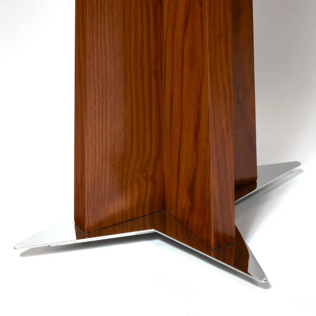 Floor lamp with shade in plaster and structure in smoked tinted oakwood, base in polished stainless steel.Wired for the US, foot dimmer included.14 watts LED E27 dimmable bulb included.