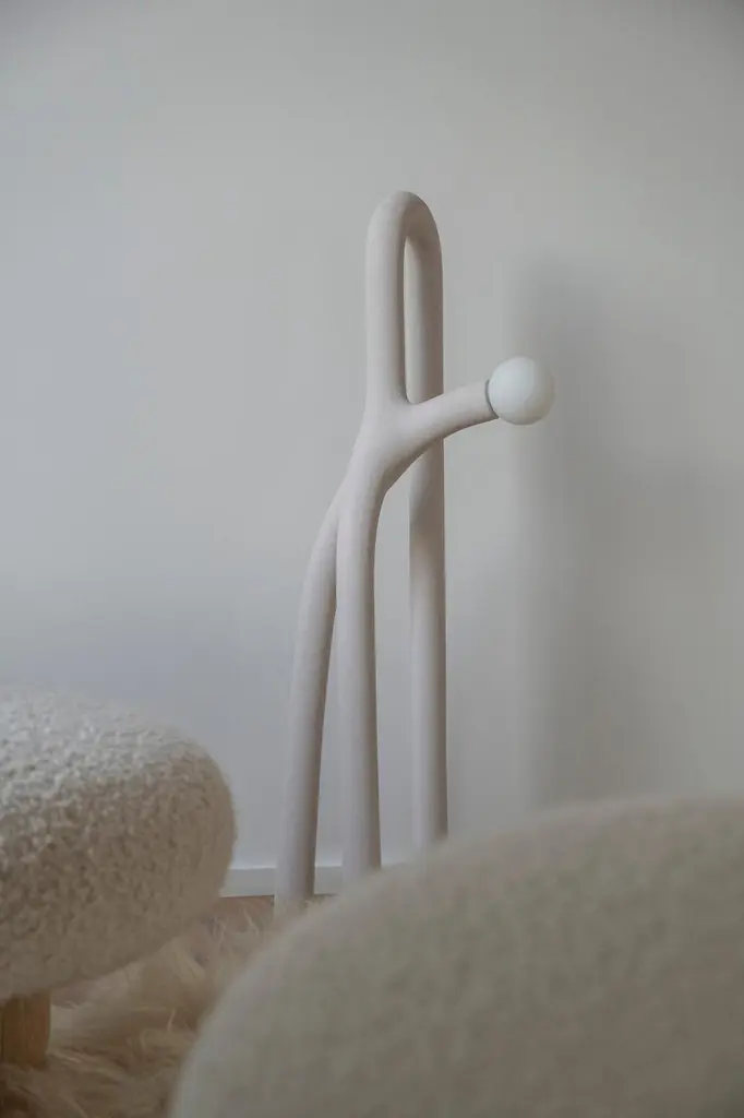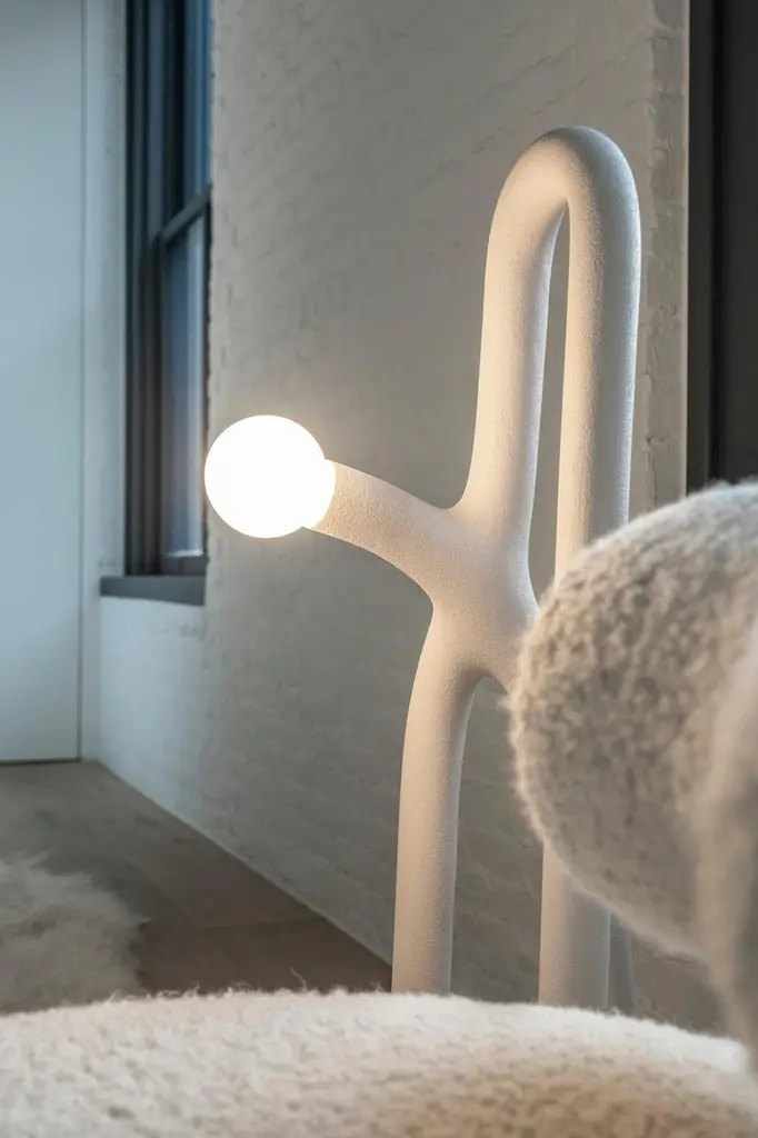 Native Limited Edition Modern Sand and Nylon Floor Lamp by Hot Wire ExtensionsLimited editionMaterials: Waste SLS 3D nylon powder, Sand from sustainable sourcesDimensions: L 28 x W 41 x H 102 cm.All our lamps can be wired according to each country. If sold to the USA it will be wired for the USA for instance.Hot Wire Extensions is a young sustainable design brand, presenting a bold innovative manufacturing process.Exploration is central to our philosophy and the Hot Wire Extensions process is conceivedwith this in mind. Using waste SLS 3D nylon powder, a material that is currently not recycled, and inspired by the way a vine grows around a tree, we reuse the material to create organic bone-like structures builtaround a wire.We design and develop a diverse range of products, furniture and installations as well as bespoke commissions all characterised by our dedication to the mindful exploration ofnew material landscapes.