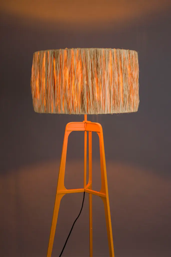 With lighting, you can quickly create a cozy atmosphere in your home, but with the Dutchbone Afra, you can add character in addition to a warm ambiance. This floor lamp has a striking appearance that immediately grabs attention. The metal base is painted in a cheerful color, which has been lightly sanded here and there for a cool, industrial touch. These conscious imperfections create a beautiful, perfectly imperfect look. In addition, the bright color and metal contrast beautifully with the natural material of the handmade lampshade. This contrast of colors and materials creates a playful effect and puts the lamp in the spotlight both when it is switched on and off.