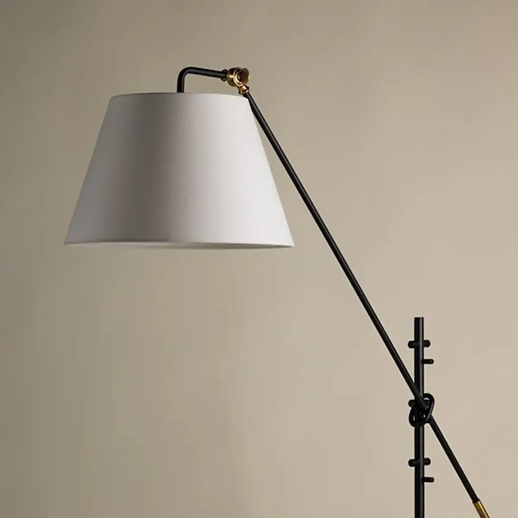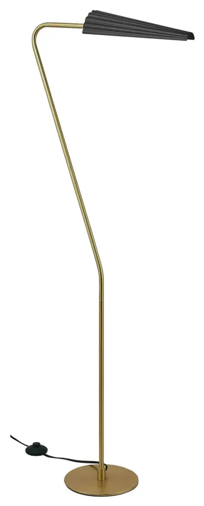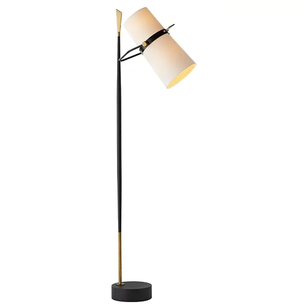 The Navin Floor Lamp from Troy Lighting boasts a minimalist design that features an ultra-slender steel framework secured by a round baseplate. Designed by Colin King, it the end sits a bin-shaped shade of white linen that delicately diffuses light from an LED. When illuminated, the shade softly glows, while the thin steel structure provides contemporary contrast. With its industrial materials and streamlined form, Navin brings a refined urban edge to modern bedrooms and living spaces.