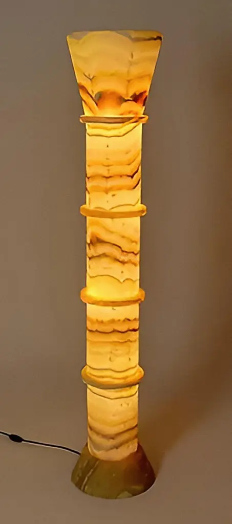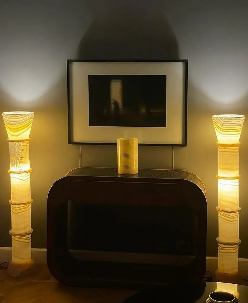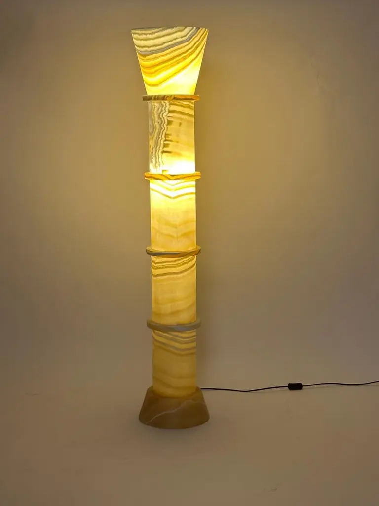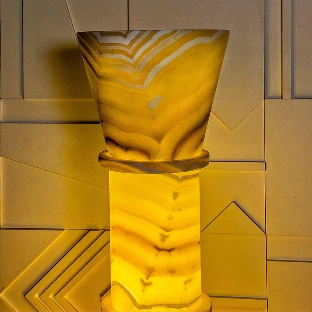 The Nefer Floor Lamp is additional design by Hassan Abouseda for HAF. This lamp features a unique design, meticulously hand-carved from Egyptian alabaster, with a beautiful glow that illuminates the entire length of the piece.HAF is a boutique design studio in Cairo - Egypt showcasing designs by co-founder Hassan Abouseda, an architect and interior designer. While the aesthetic is modern in spirit, it is also today homage to classical Egyptian design and traditional Egyptian craftsmanship and materials.