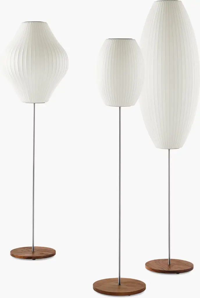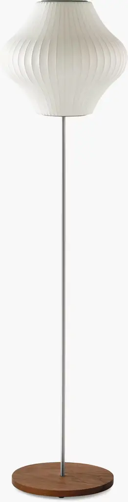 While outfitting his office, architect and Herman Miller design director George Nelson discovered a silk-covered Swedish hanging lamp that he coveted but found too expensive. He then recalled seeing a photo in the paper of Liberty ships being mothballed “by having the decks covered with netting and then being sprayed with a self-webbing plastic," which got him thinking. “And then, Whammo!" Inspiration struck, and by the next night, Nelson had designed his first Bubble Lamp (1952) by spinning a skeleton of steel wires on a turntable and shooting it with translucent plastic until it was covered in a smooth, washable film. “When you put a light in it, it glowed," he said. This is the authentic Bubble Lamp, produced in partnership with the George Nelson Foundation. Bulb (included): LED, CFL or incandescent; E26 base; 60W max for small, 150W max for others. UL Listed.
