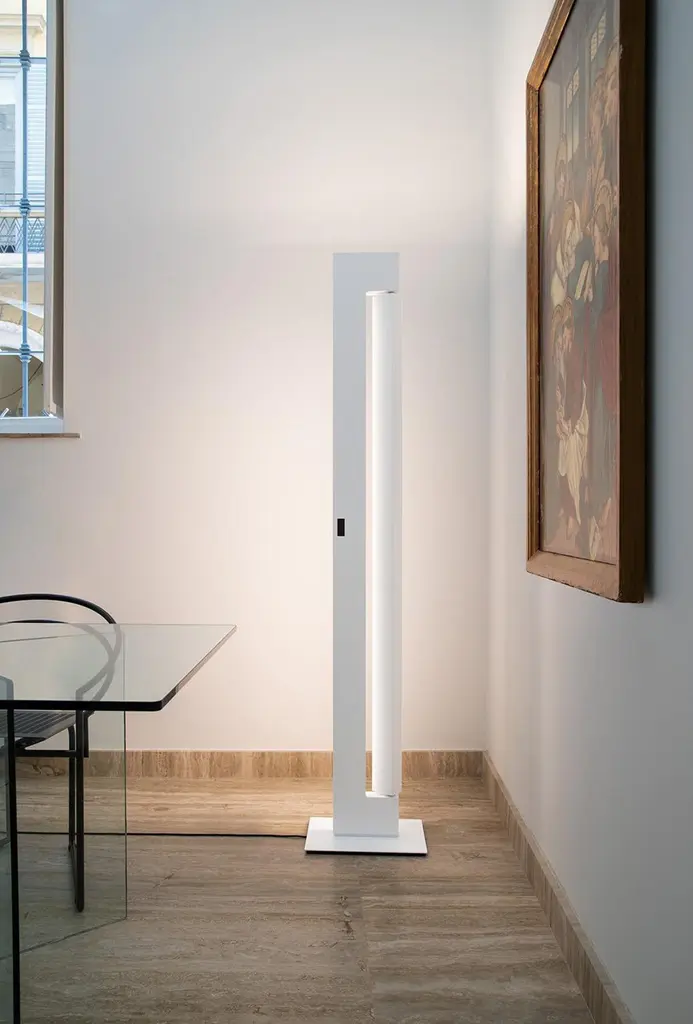 Floor LED lamps composed by two elements in extruded aluminium: structure is painted in white, anthracite, champagne and moka, while the rotating illuminated structure can be glossy anodized or painted matt white or anthracite.The LED uplight source is integrated in the upper part of the structure and it creates a widespread light, while a LED source is integrated in the main structure for a widespread and adjustable light.The power supply and dimmer are integrated.Additional information:Material: AluminumColor & Finish: White/whiteDesign Year: 2000Bulb Quantity: 2Wattage: 27+45WVoltage: 120VBulb Type: LED integratedLamping Type: LEDLamp (s) Included: YesLumens: 2390lm + 3426lmCRI: 83Color Temperature: from 2200K to 3000KDimmable: YesDimmer Type: Double, dimmable on dimm to warm on boardDimmer Included: YesManufacturer Warranty: 1 YearCanopy/Backplate: NoLight function: DiffusedLocation: IndoorDimensions: Width: 14.2", Height: 70.1", Depth: 10.4"Available in other variant options: Champagne/polished, Moka/polished, Anthracite/polished, Anthracite/anthracite