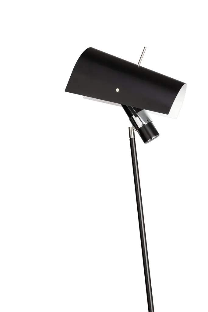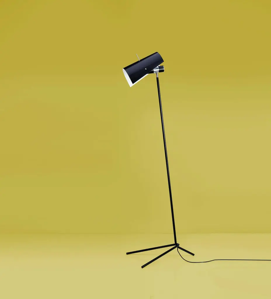 Claritas is the first lamp designed by Vico Magistretti, produced with Mario Tedeschi in 1946. The lamp is made of bent metal tubes, painted in black. Parts of the structure are in chromed metal. Aluminum diffuser painted in black, white in the inner part.Additional information:Material: Aluminum, steelColor & Finish: BlackDesign Year: 1946Bulb Quantity: 1Wattage: 100WVoltage: 120VBulb Type: E26, A60Lamping Type: LED/halogenLamp (s) Included: NoDimmable: YesDimmer Type: Dimmer on cable, dimmable according to bulbDimmer Included: YesRatings: UL ratedManufacturer Warranty: 1 YearCanopy/Backplate: NoLocation: IndoorDimensions: Width: 19.7", Height: 64.6", Length: 18.5"Weight: 11 lbs