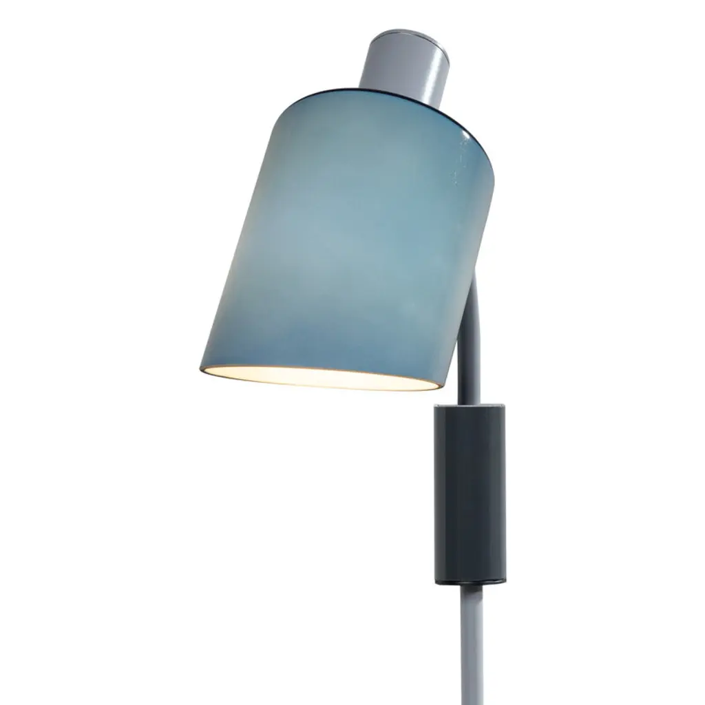 Starting from the necessity of illuminating the faces reflected in the mirror of a cabinet designed for the famous French glassworks Boussois, in 1965 Charlotte Perriand designed the wall-mounted version of the Lampe de Bureau, later transformed into a table lamp. Now the collection expands with the reading version. The grey steel stem is anchored to a lifted, almost suspended, darker base. The translucid pressed glass diffuser is available in the finishes green, red, blue mare, blue grey, yellow and matt white outside, while on the inside the white finish preserves the natural colour of the light.Additional information:Material: Glass, SteelColor & Finish: Blue GreyDesign Year: 2022Bulb Quantity: 1Wattage: 20WVoltage: 120VBulb Type: E12Lamping Type: LED Lamp (s) Included: NoDimmable: NoDimmer Type: Swith on boardDimmer Included: NoRatings: ETL ratedManufacturer Warranty: 1 yearCanopy/Backplate: NoLight function: Diffused / DirectLocation: IndoorDimensions: ø: 3.7", Height: 47.2" Weight: 8.6 lbsAvailable in other color options: Blue Mare, Yellow, Red, Green, White