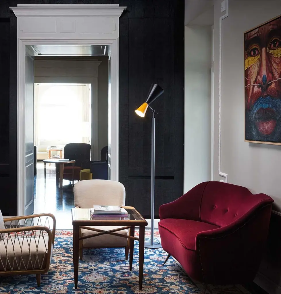 Nemo Parliament E26 Floor Lamp In Black/yellow By Le Corbusier