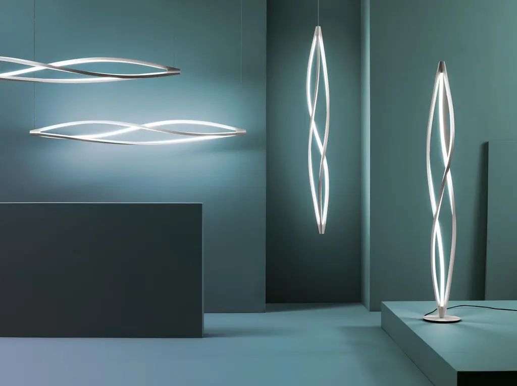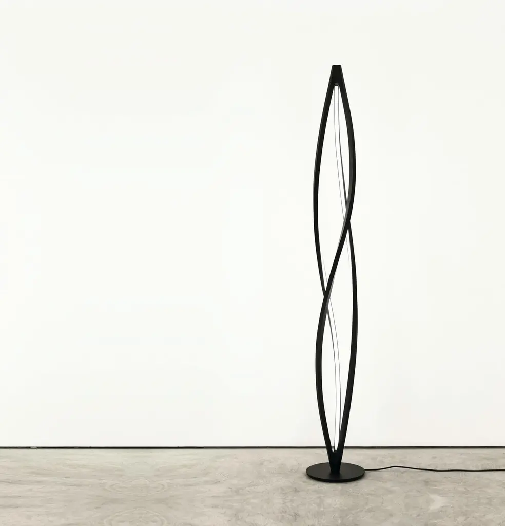 Floor lamp for a warm and widespread LED lighting. The structure is manufactured through a technology of torsion and misalignment of the aluminum extruded bar, expressly studied by Nemo. It allows a 360° LED emission. Terminal parts are in die-casted aluminum. Diffusers are in opal metacrylate. The lamp is available in matt white, matt black, titan grey or matt gold. Switch and dimmer on the cable.Additional information:Material: Aluminum, PCColor & Finish: Titan GreyDesign Year: 2000Bulb Quantity: 1Wattage: 58WVoltage: 120VBulb Type: LED integratedLamping Type: LEDLamp (s) Included: YesLumens: 2850lmCRI: 85Color Temperature: 2700KDimmable: YesDimmer Type: Dimmer on cableDimmer Included: YesRatings: ETL ratedManufacturer Warranty: 1 yearCanopy/Backplate: NoLocation: IndoorDimensions: ø: 10.2", Height: 72"Weight: 16.5 lbsAvailable in other color options: Gold Painted, Black, WhiteAvailable in other color temperature options: 3500K, 3000K