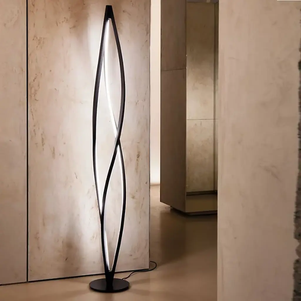 Floor lamp for a warm and widespread LED lighting. The structure is manufactured through a technology of torsion and misalignment of the aluminum extruded bar, expressly studied by Nemo. It allows a 360° LED emission. Terminal parts are in die-casted aluminum. Diffusers are in opal metacrylate. The lamp is available in matt white, matt black, titan grey or matt gold. Switch and dimmer on the cable.Additional information:Material: Aluminum, PCColor & Finish: Titan GreyBulb Quantity: 1Wattage: 58WVoltage: 120VBulb Type: LED integratedLamping Type: LEDLamp (s) Included: YesLumens: 2850lmCRI: 85Color Temperature: 3500KDimmable: YesDimmer Type: Dimmer on cableDimmer Included: YesRatings: ETL ratedManufacturer Warranty: 1 yearCanopy/Backplate: No Light function: DirectLocation: IndoorDimensions: ø: 10.2", Height: 72"Weight: 16.5 lbsAvailable in other color options: Gold Painted, Black, WhiteAvailable in other color temperature options: 3000K, 2700K