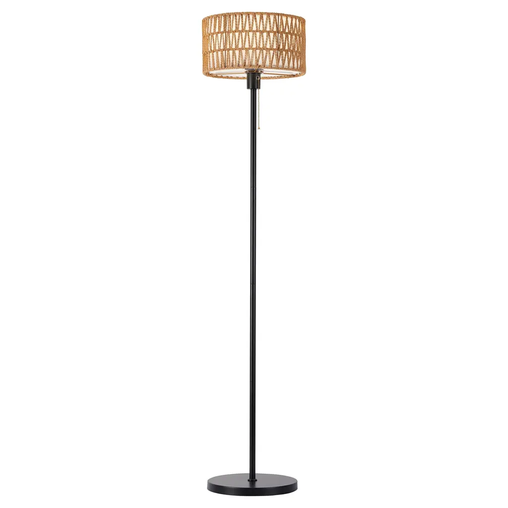 Introducing our Netin Woven Rattan Shade Lamp Series, where simplicity meets elegance in a 57”H floor lamp with a steady 11"ø weighted base. This exquisite piece features a quality handcrafted double-layered natural rattan lamp shade that seamlessly blends nature with modern style, emitting a soft and inviting light.Crafted with care, the pole of this tall floor lamp is made of premium durable metal, ensuring longevity and stability. The 11"ø weighted base adds an extra layer of security, making it safe around children and pets. Its compact design not only saves space but also adds a touch of style to any home decor, whether coastal, boho, or rustic.Total Height: 57"HOuter Lampshade: 13" Handcrafted Woven RattanInner Lampshade: 11" Handcrafted Woven RattanConstruction: Strong steel construction with an 11"ø steady weighted baseSwitch: Easy reach classic chain pull on/off switchAdjustable Lighting: Choose from three color temperatures to suit your ambianceSafety: ETL Listed for peace of mindAssembly: Minimal assembly requiredExperience the perfect blend of functionality and aesthetics with our modern floor lamp. Illuminate your space with the warm and ambient glow, making it an ideal addition to your home. Elevate your decor effortlessly with the Netin Woven Rattan Shade Lamp Series