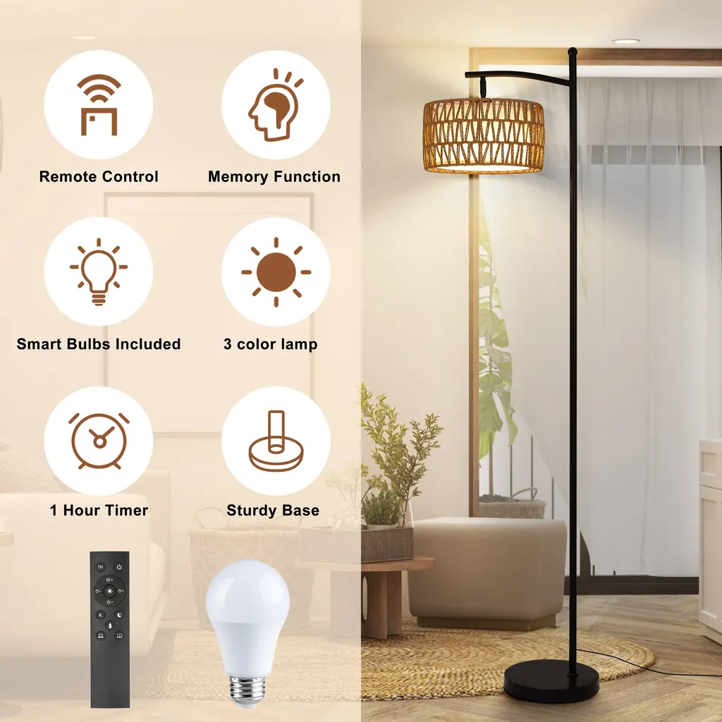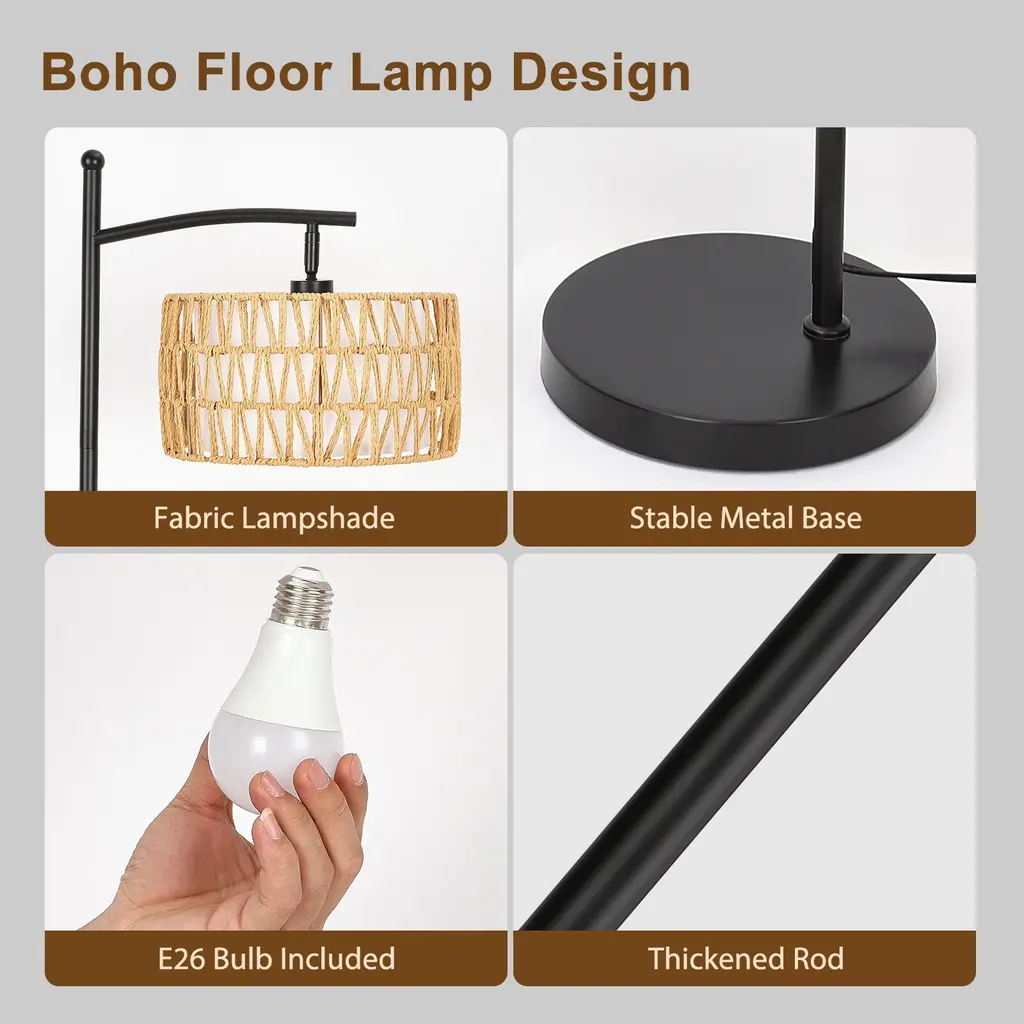 Be Your Own Designer:Netin 66" floor lamp modern comes with two removable lampshades, one is a 100% hand-woven rattan lampshade and one is a soft fabric shade. Update the look of the standing lamp at any time simply by combining the lampshades freely; the 2 in 1 rattan & fabric shade design allows you to enjoy the diversity of home decor. Innovative design offers diverse options for everybody,this adjustable floor lamp suit for any decor and is suitable for such style as contemporary, vintage, mid-century, traditional, farmhouse and so the like.Features:Included:Dimension: