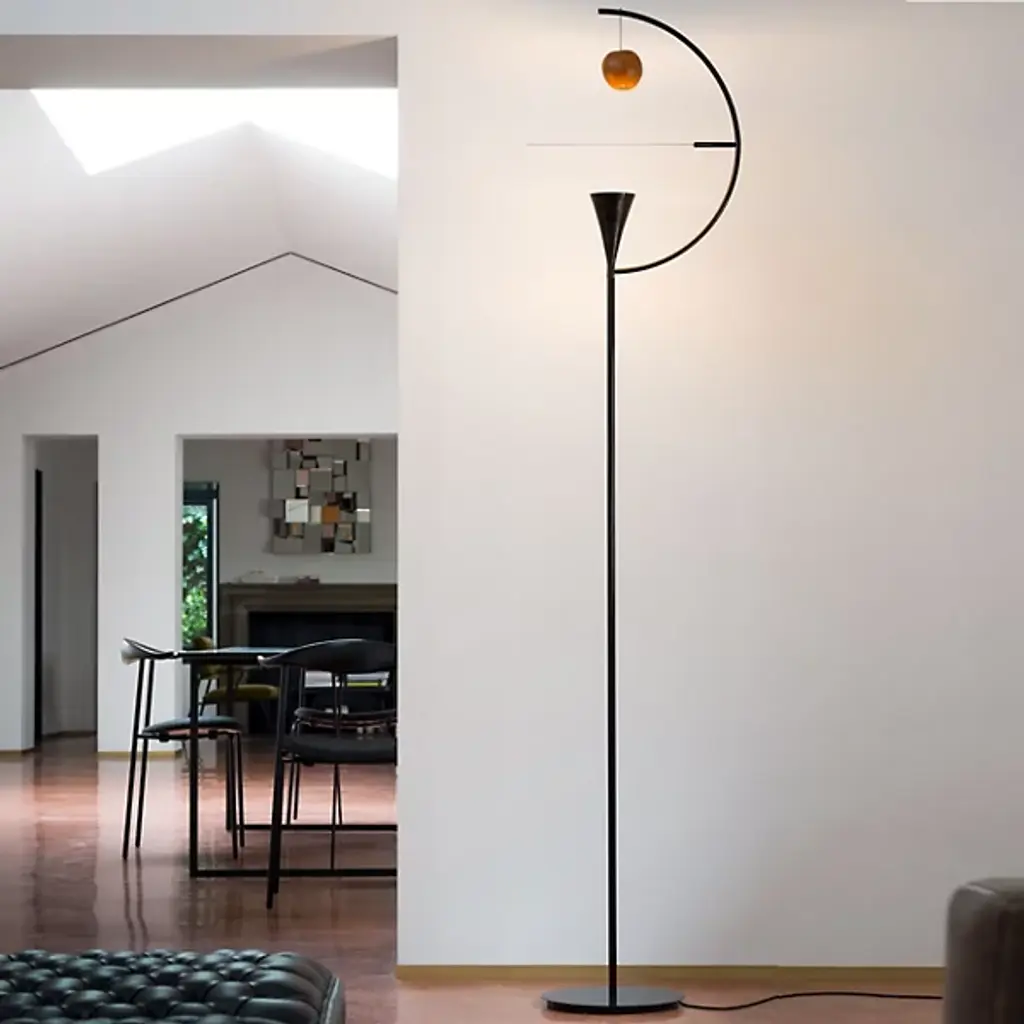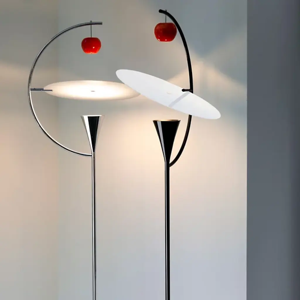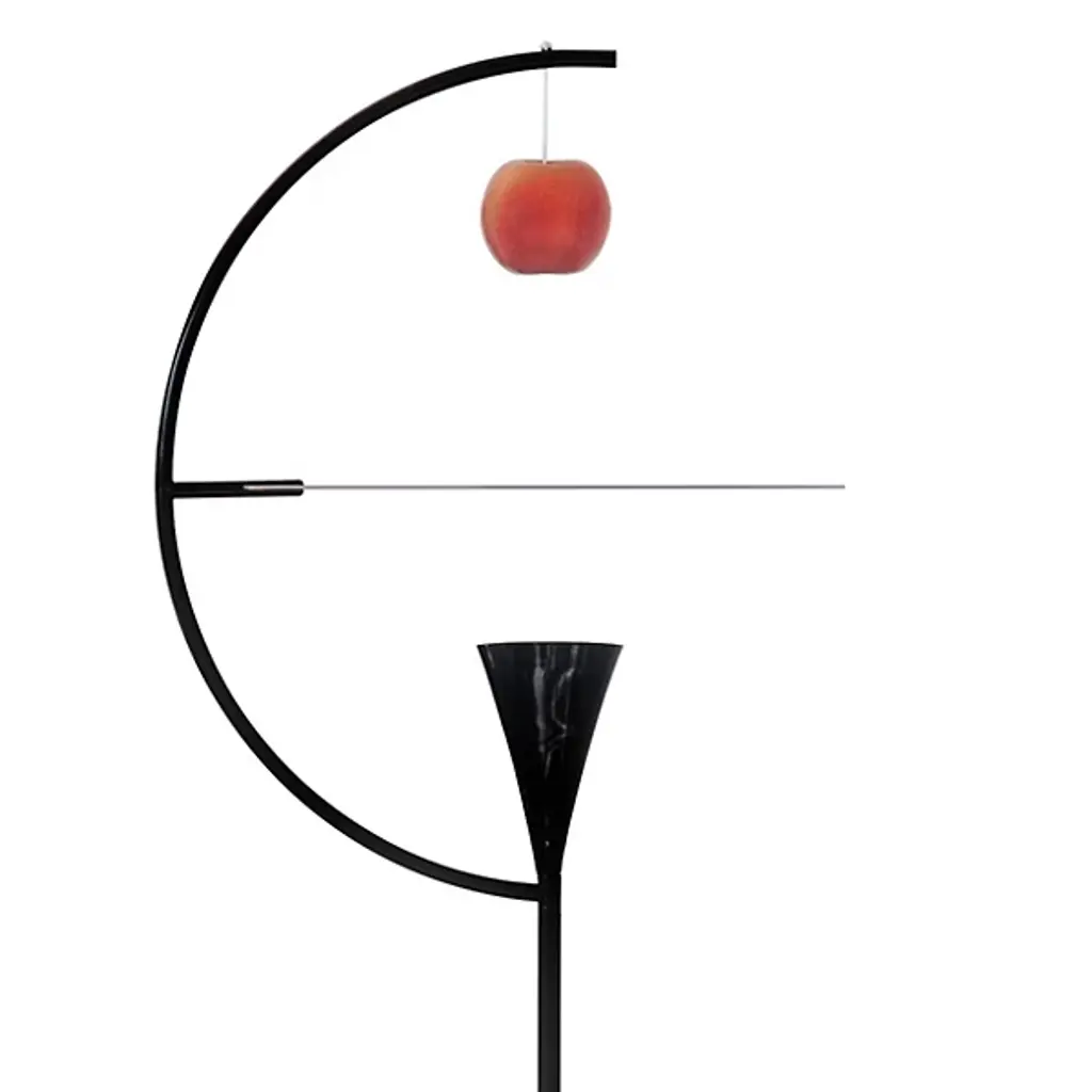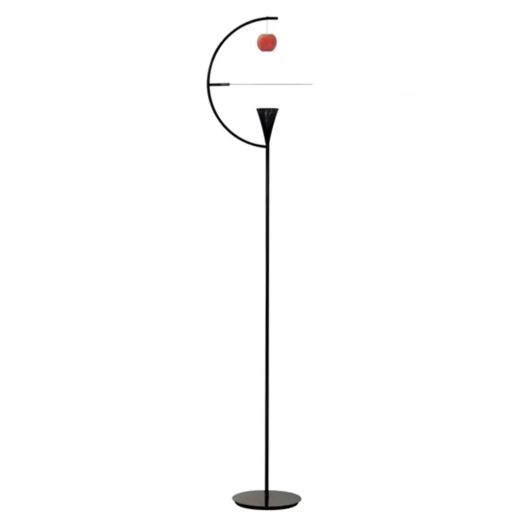 Gravitate toward the curious beauty of the Newton LED Floor Lamp by Nemo. Designed by Andrea Branzi, this playful fixture is inspired by the story of the apple that fell on Isaac Newton’s head, prompting him to create his law of universal gravitation. A curved arm extends from the top of the lamp’s body, forming a half-circle and suspending an artificial apple at its end. The arm’s center point supports a disc-shaped white painted aluminum diffuser, which catches the uplight from an integrated LED light beam below. A conical end creates a warm spotlight for the fruit, while a circular base supports its slender body.