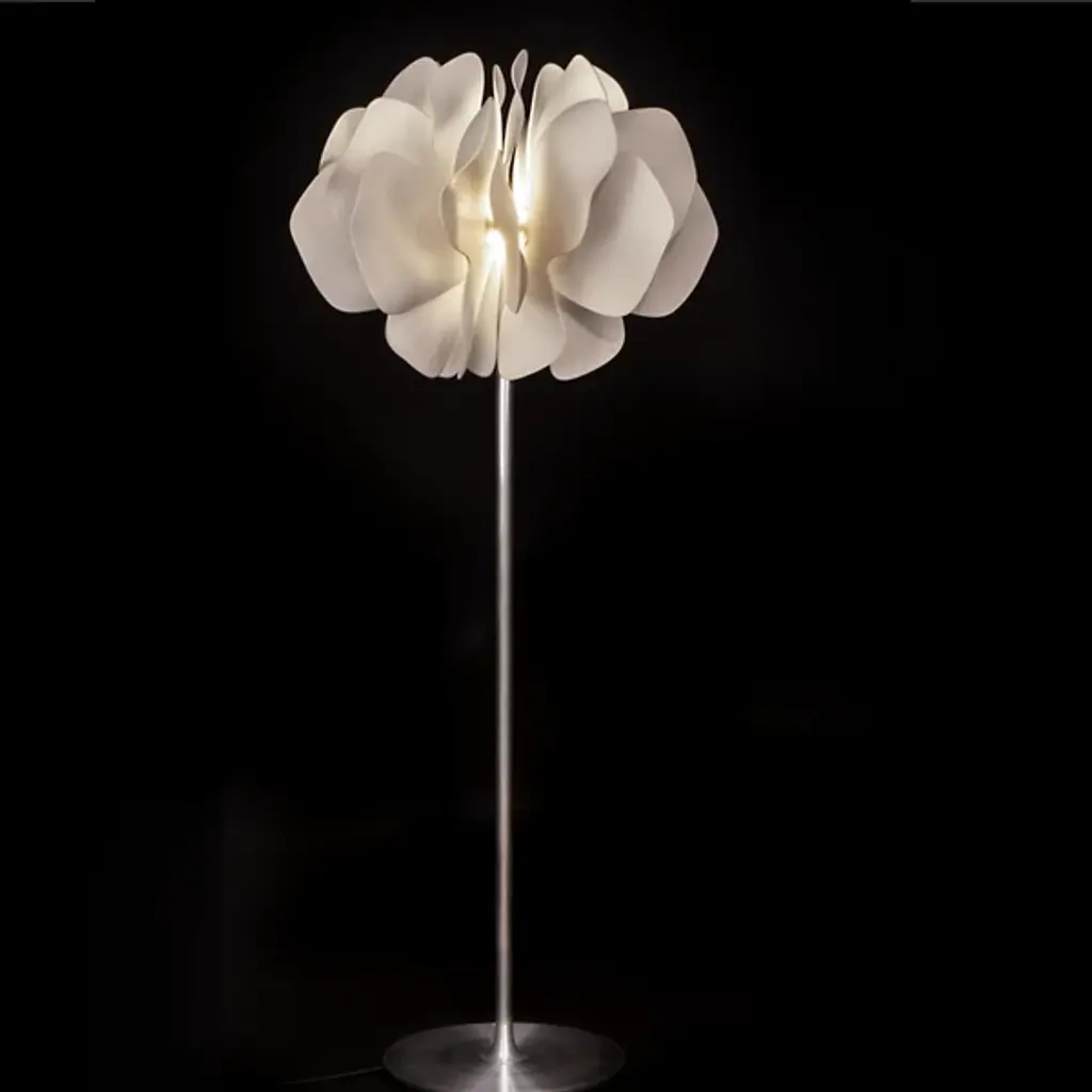 A functional work of art, translating the beautiful image of flower petals dancing in the moonlight. Create an intimate atmosphere that leaves an impression with the Nightbloom LED Floor Lamp from Lladro. Designer Marcel Wanders shares Lladro's approach of unhurried design, one championing the art of craftsmanship. Wanders speaks to the modern and contemporary setting with a sleek metal structure that nearly disappears in profile. The low-key quality of the base only helps to enhance the handcrafted intricacies of the shade. To create the shade, artisans sculpt porcelain into flowy petals and texture their surface with fine, familiar contours. The dynamic arrangement of the petals creates a beautiful play of light and shadow at any time of day. When turned on, a soft golden light touches up the sculpted piece, leaving one with an unforgettable silhouette.