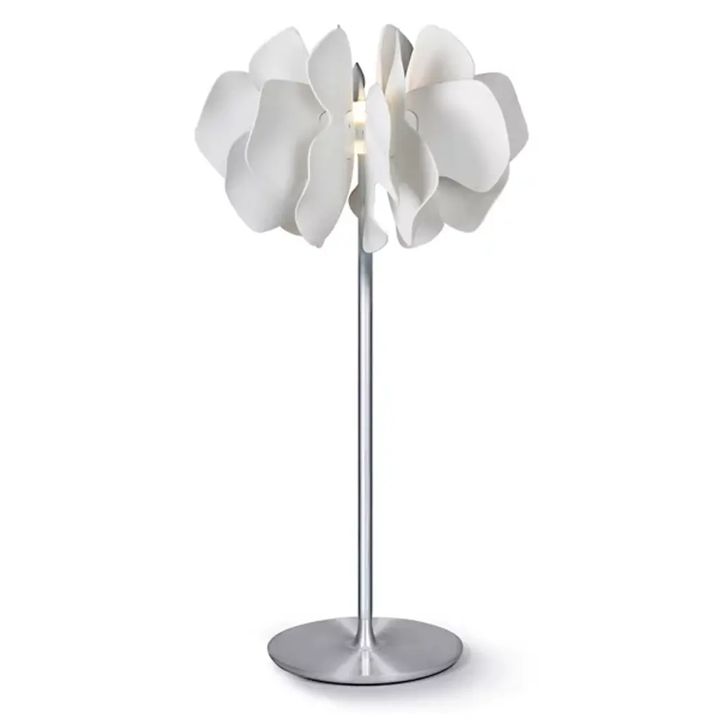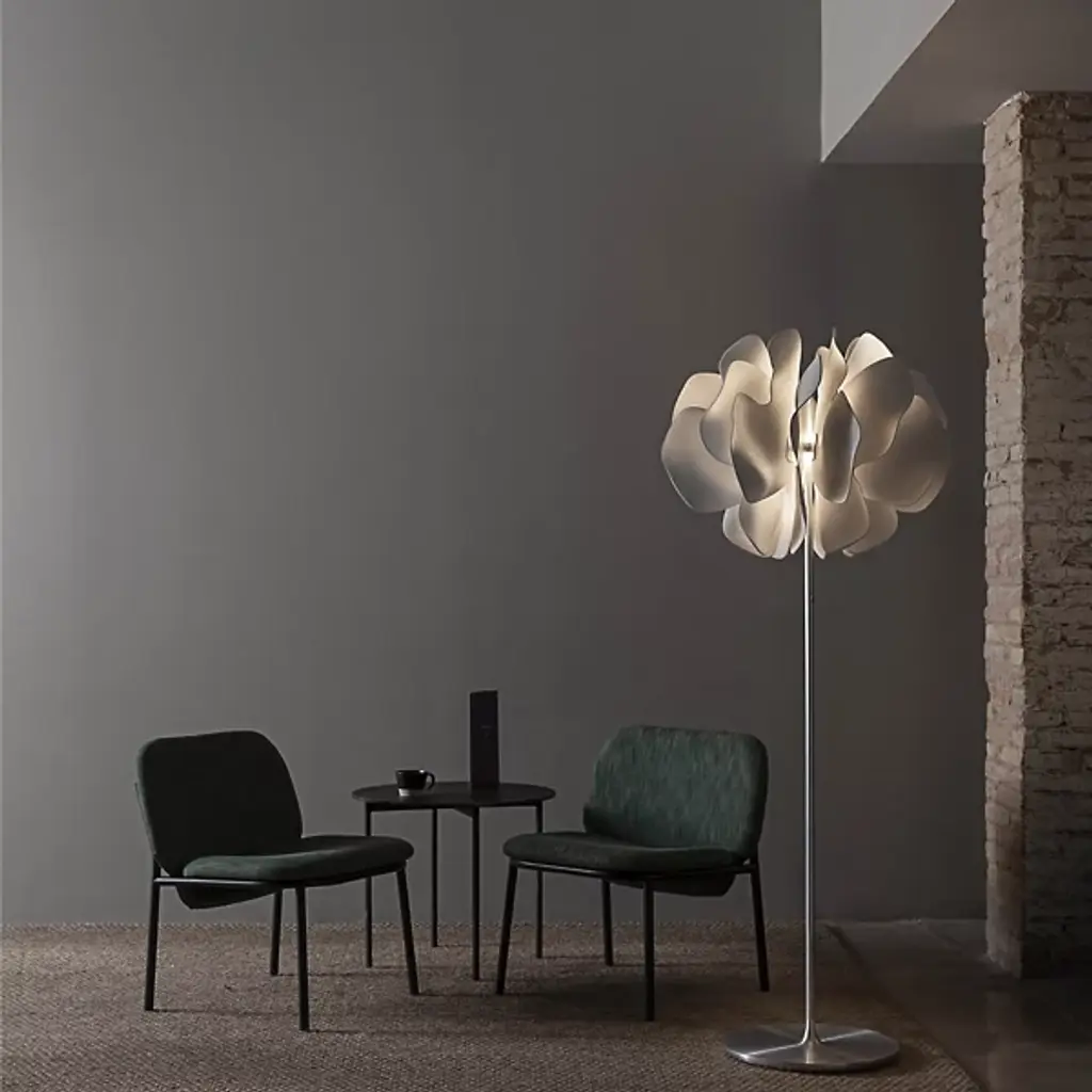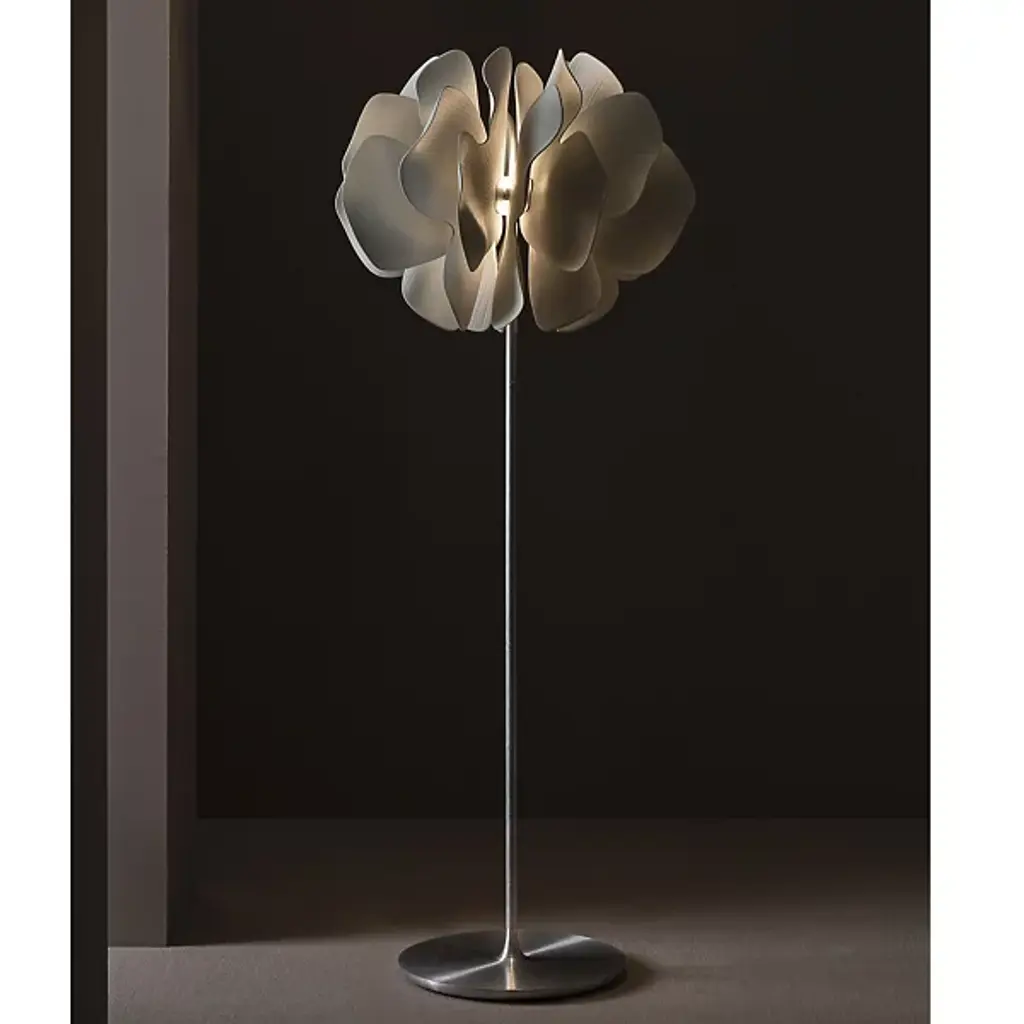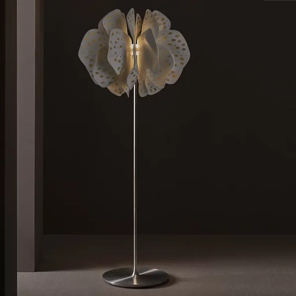 A functional work of art, translating the beautiful image of flower petals dancing in the moonlight. Create an intimate atmosphere that leaves an impression with the Nightbloom LED Floor Lamp from Lladro. Designer Marcel Wanders shares Lladro's approach of unhurried design, one championing the art of craftsmanship. Wanders speaks to the modern and contemporary setting with a sleek metal structure that nearly disappears in profile. The low-key quality of the base only helps to enhance the handcrafted intricacies of the shade. To create the shade, artisans sculpt porcelain into flowy petals and texture their surface with fine, familiar contours. The dynamic arrangement of the petals creates a beautiful play of light and shadow at any time of day. When turned on, a soft golden light touches up the sculpted piece, leaving one with an unforgettable silhouette.